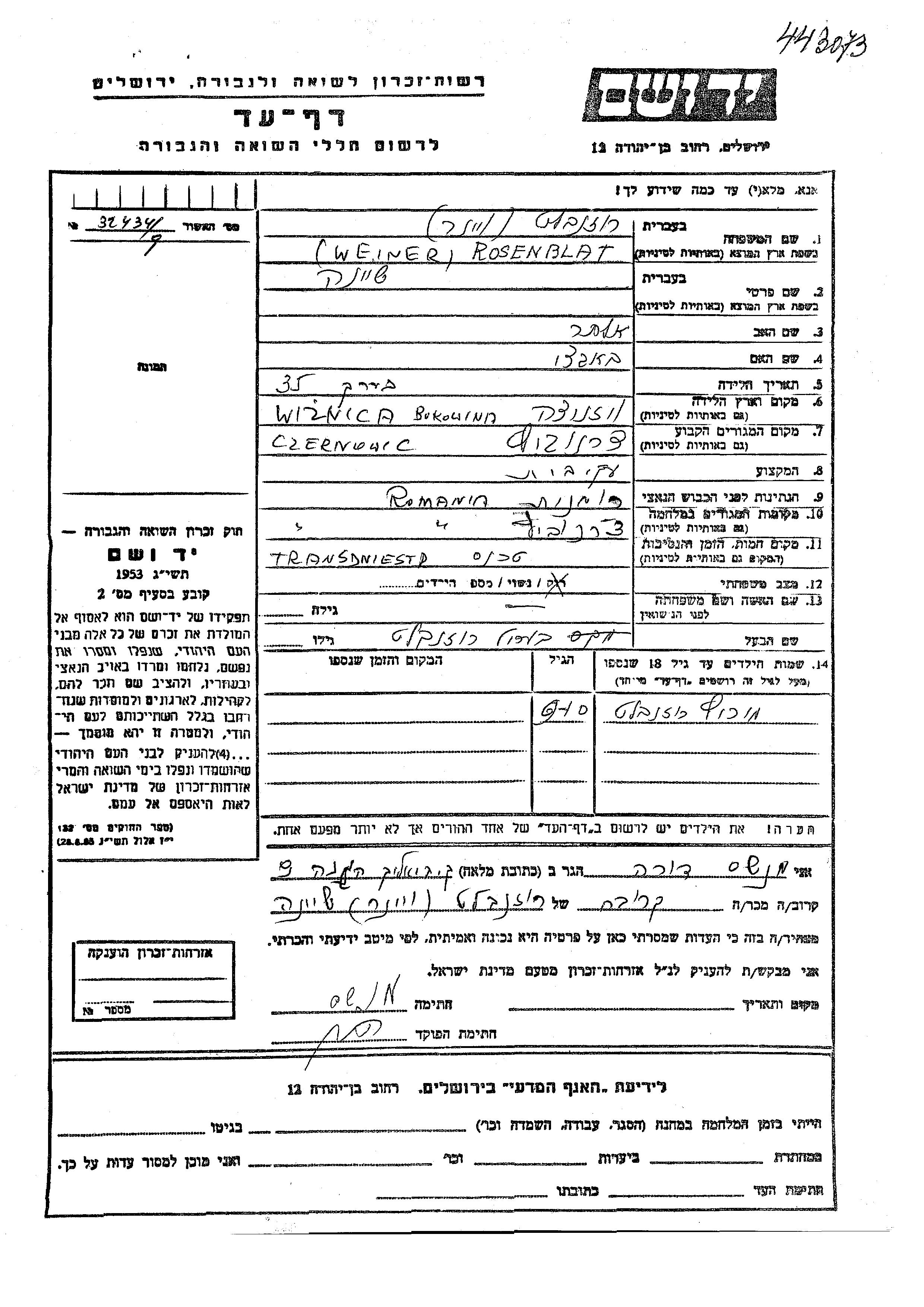 Yad Vashem - Pages of Testimony Names Memorial Collection