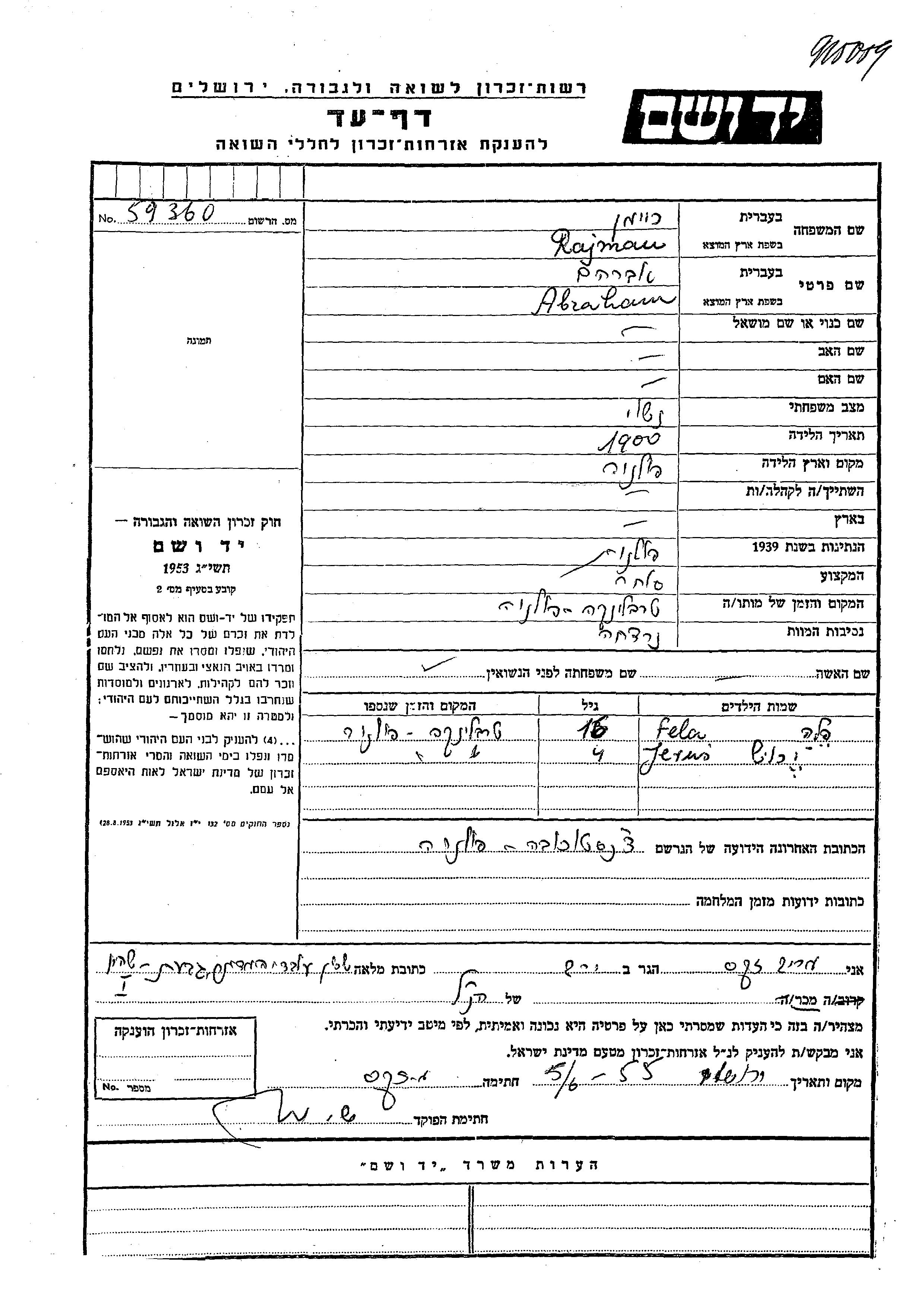 Yad Vashem - Pages of Testimony Names Memorial Collection