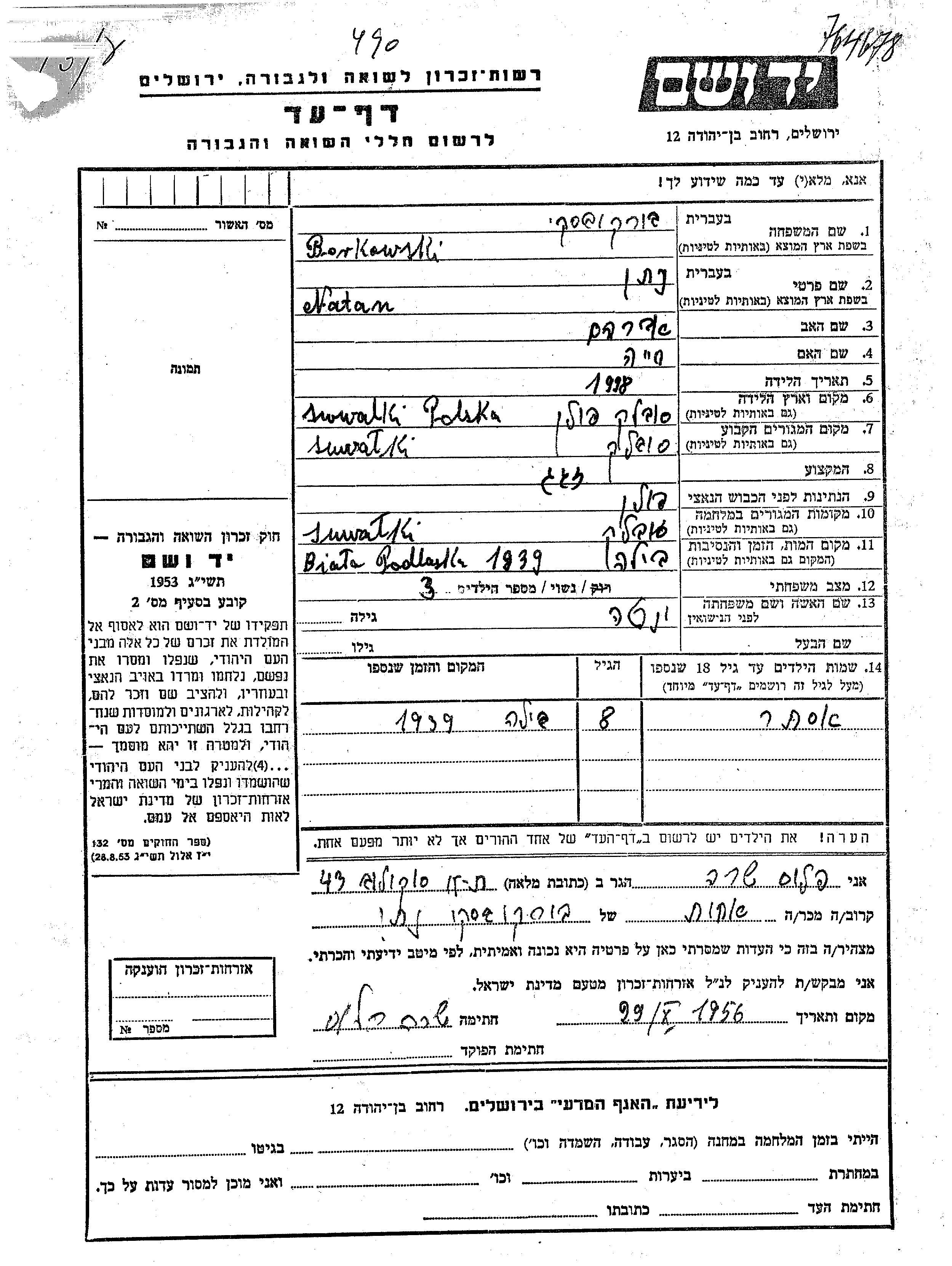 Yad Vashem - Pages of Testimony Names Memorial Collection
