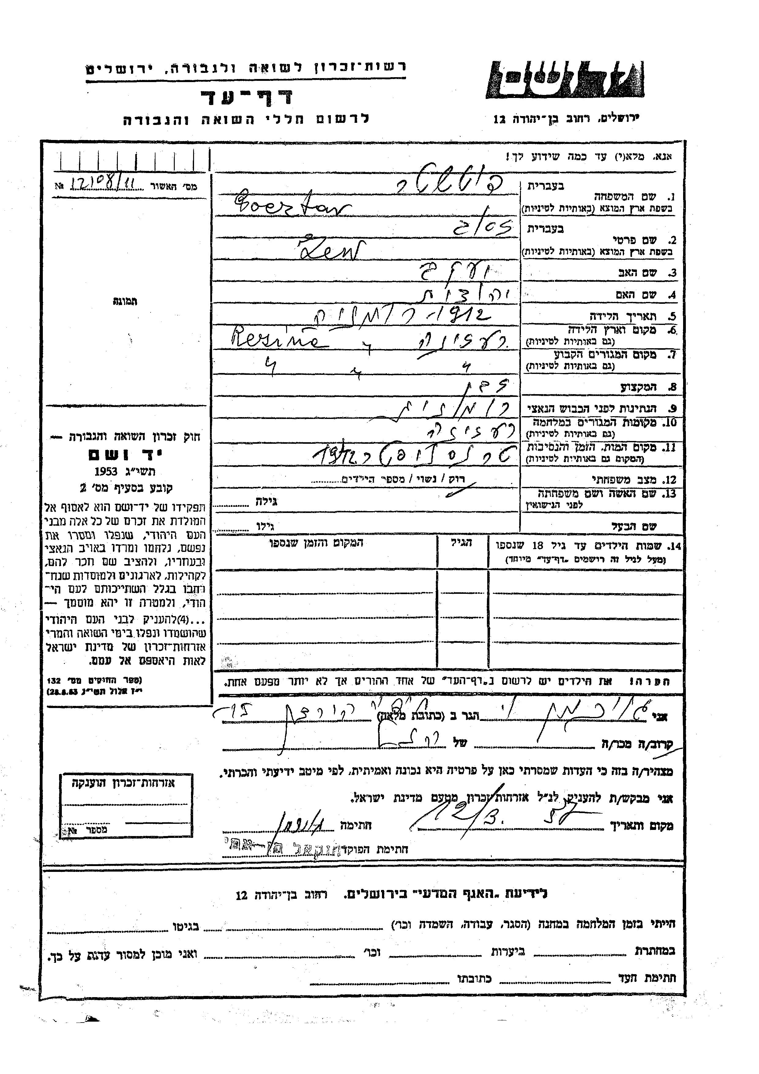 Yad Vashem - Pages of Testimony Names Memorial Collection