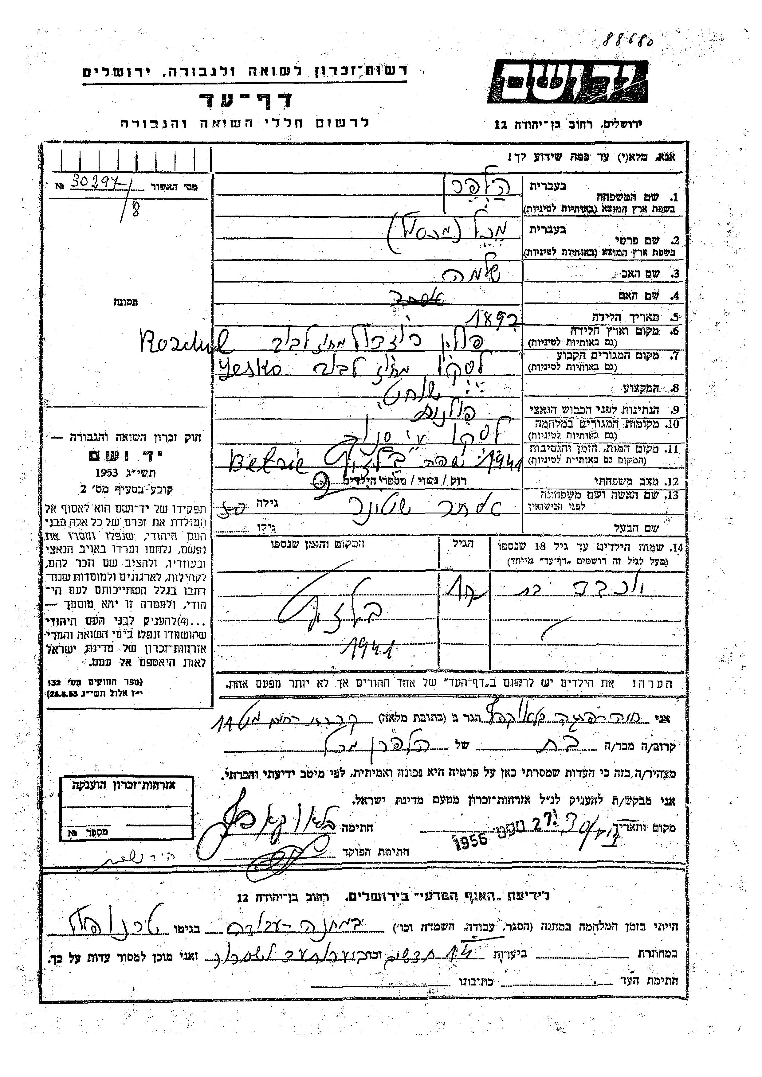 Yad Vashem - Pages of Testimony Names Memorial Collection