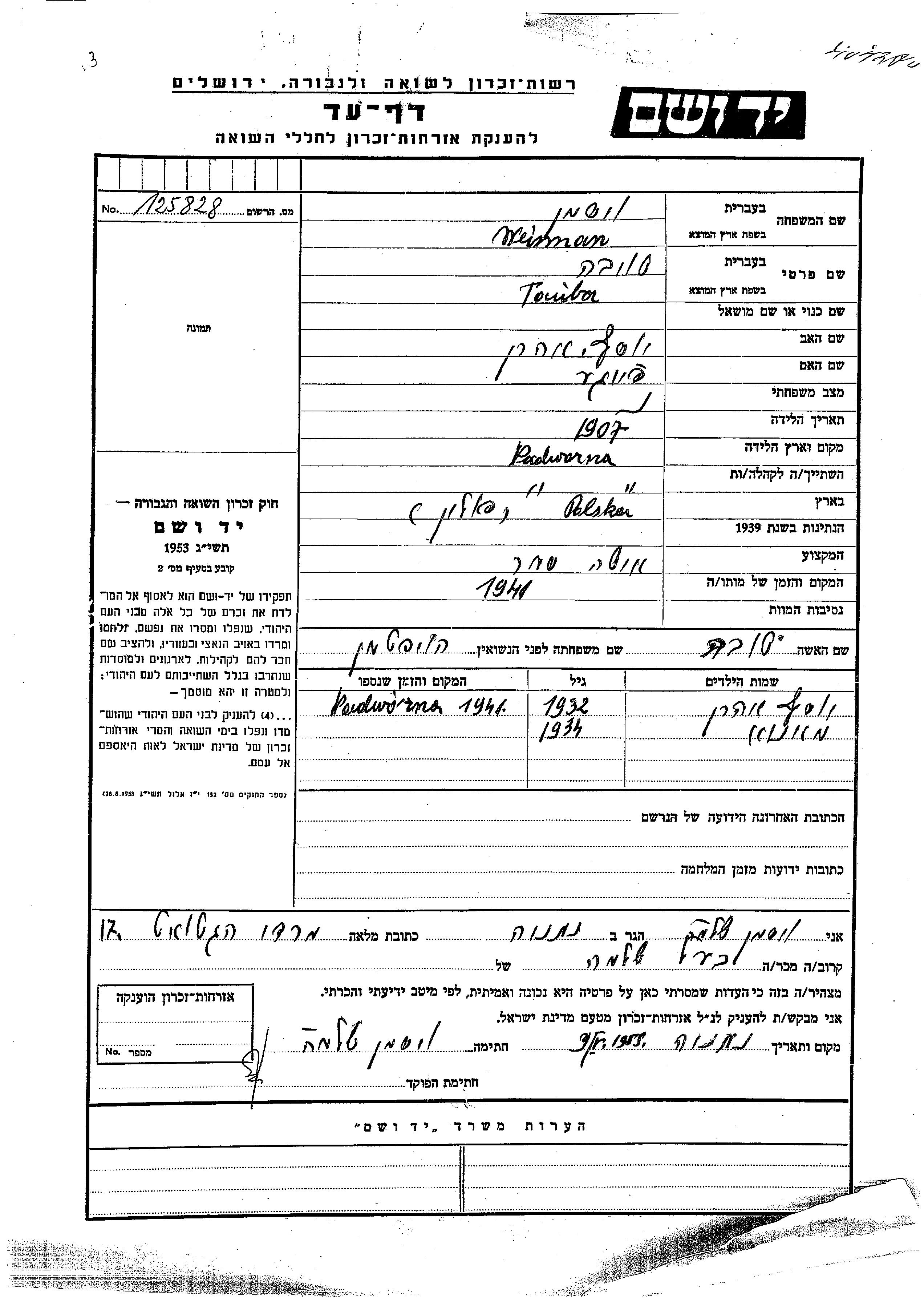 Yad Vashem - Pages of Testimony Names Memorial Collection