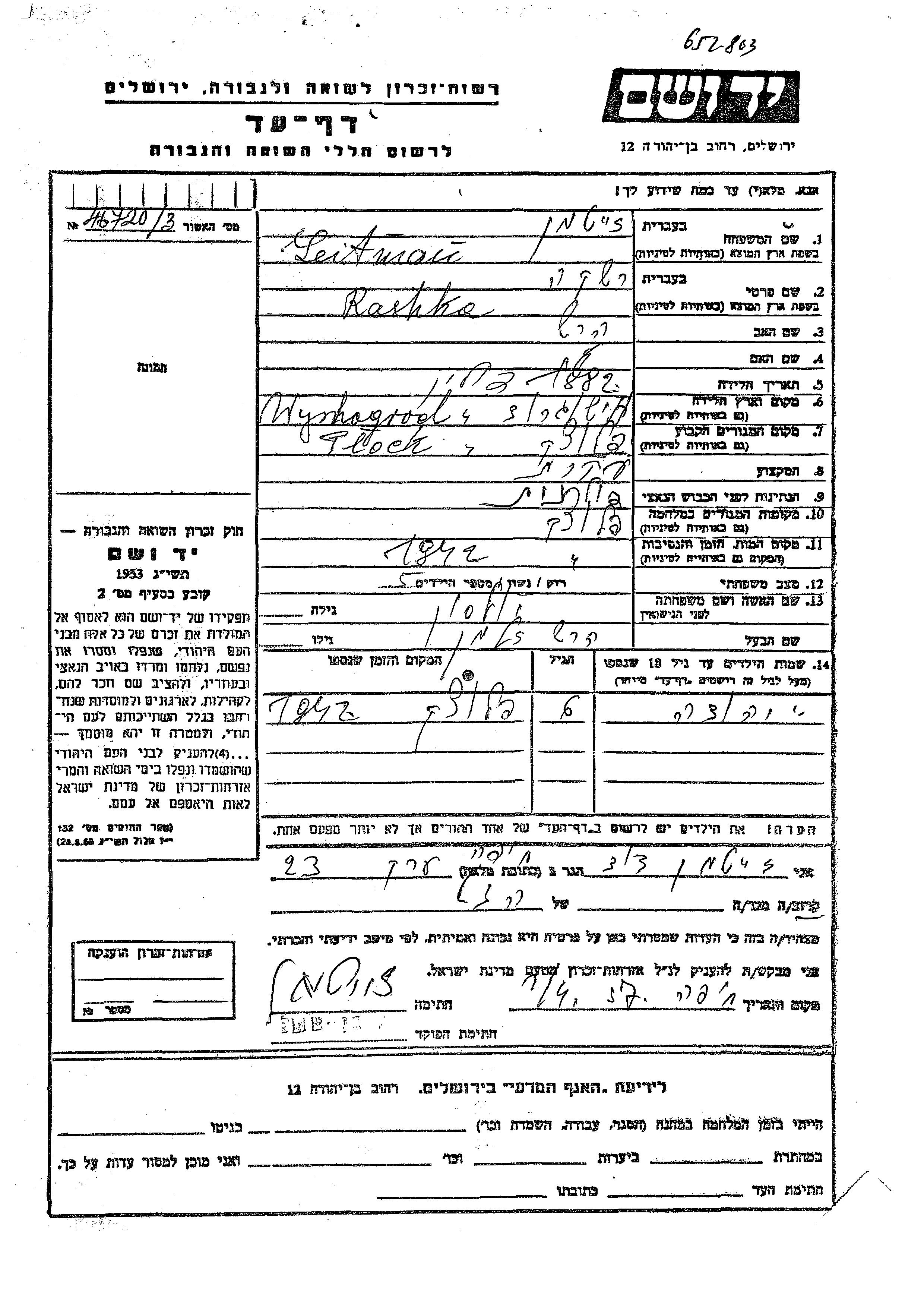 Yad Vashem - Pages of Testimony Names Memorial Collection