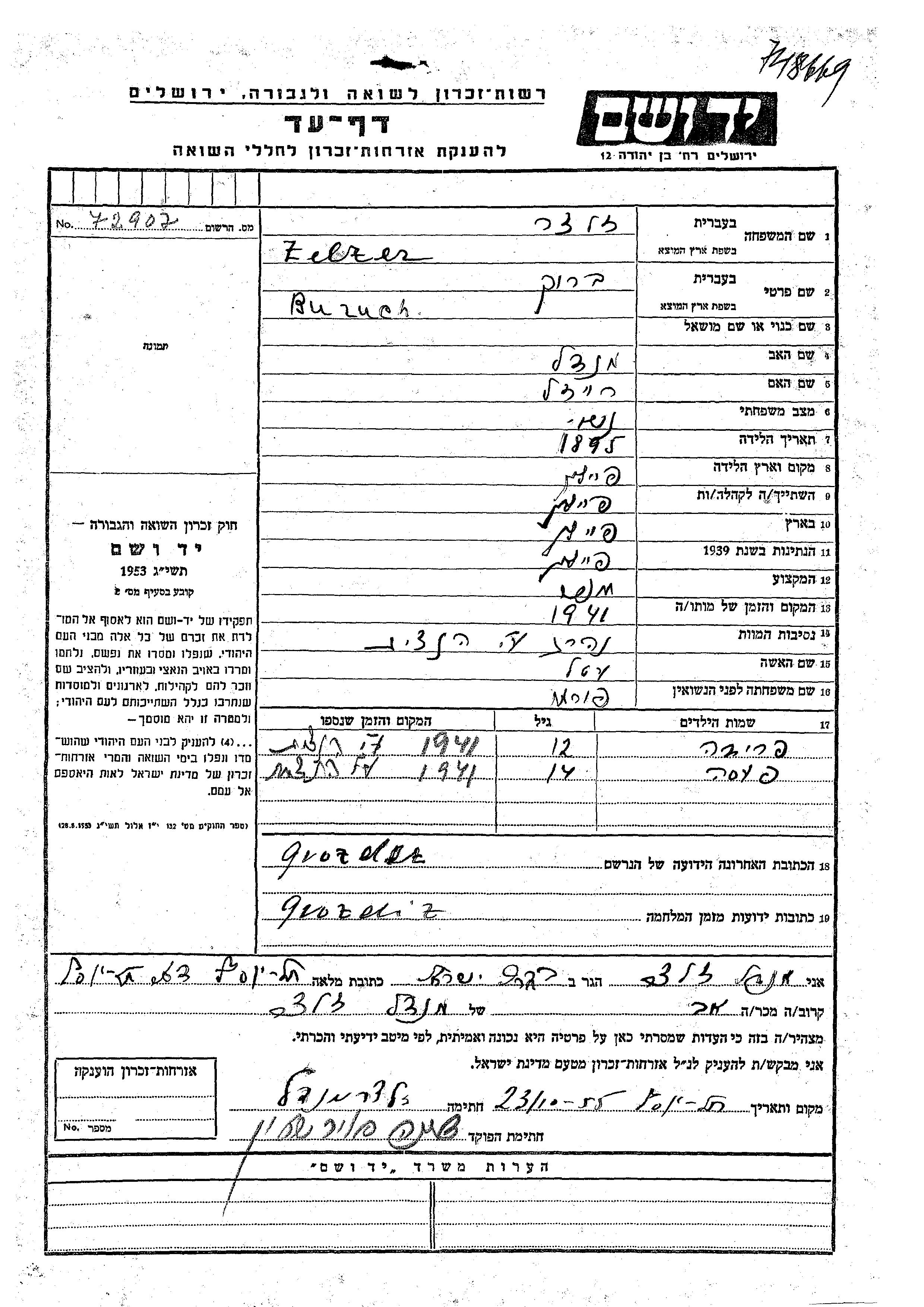 Yad Vashem - Pages of Testimony Names Memorial Collection