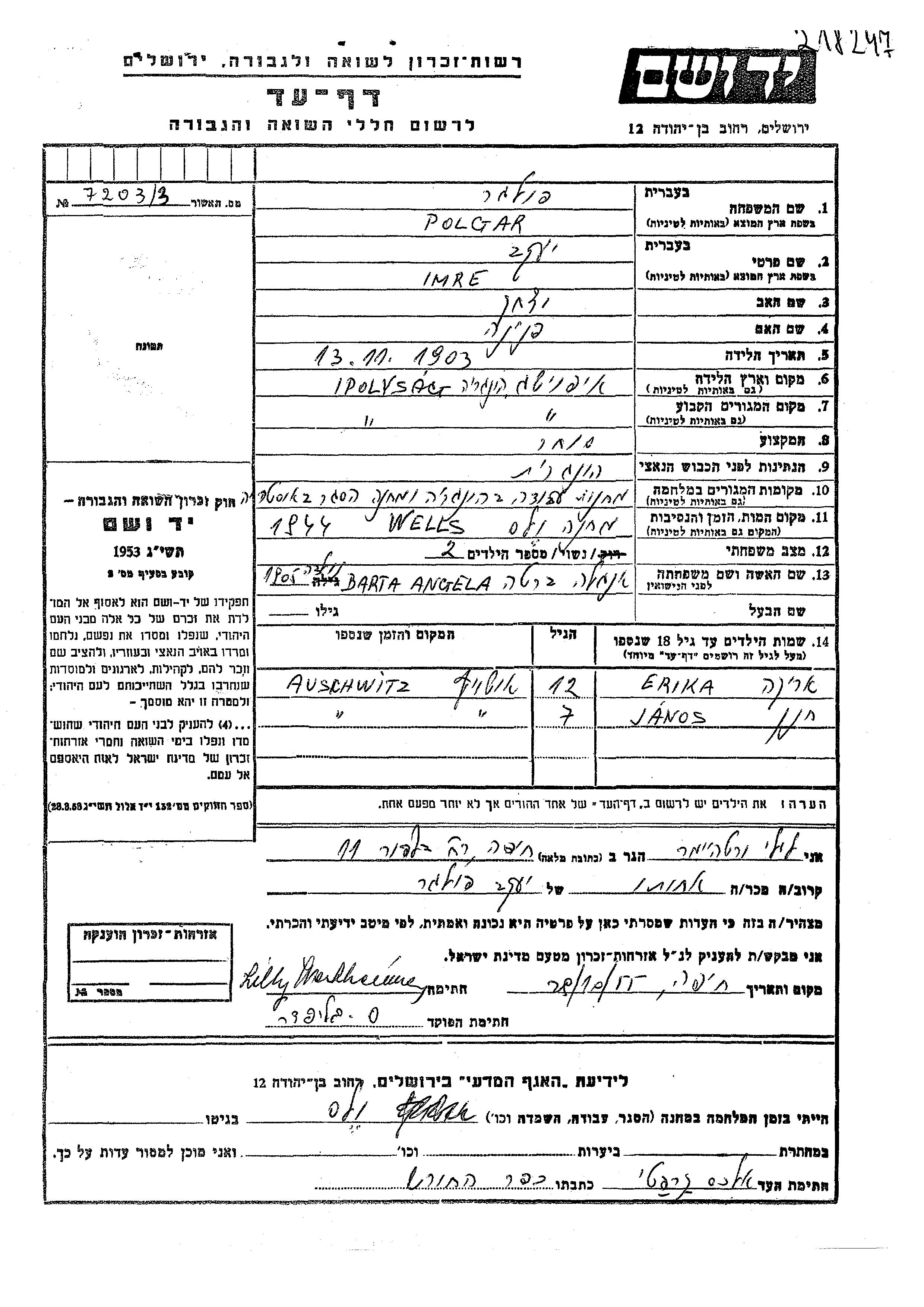 Yad Vashem - Pages of Testimony Names Memorial Collection