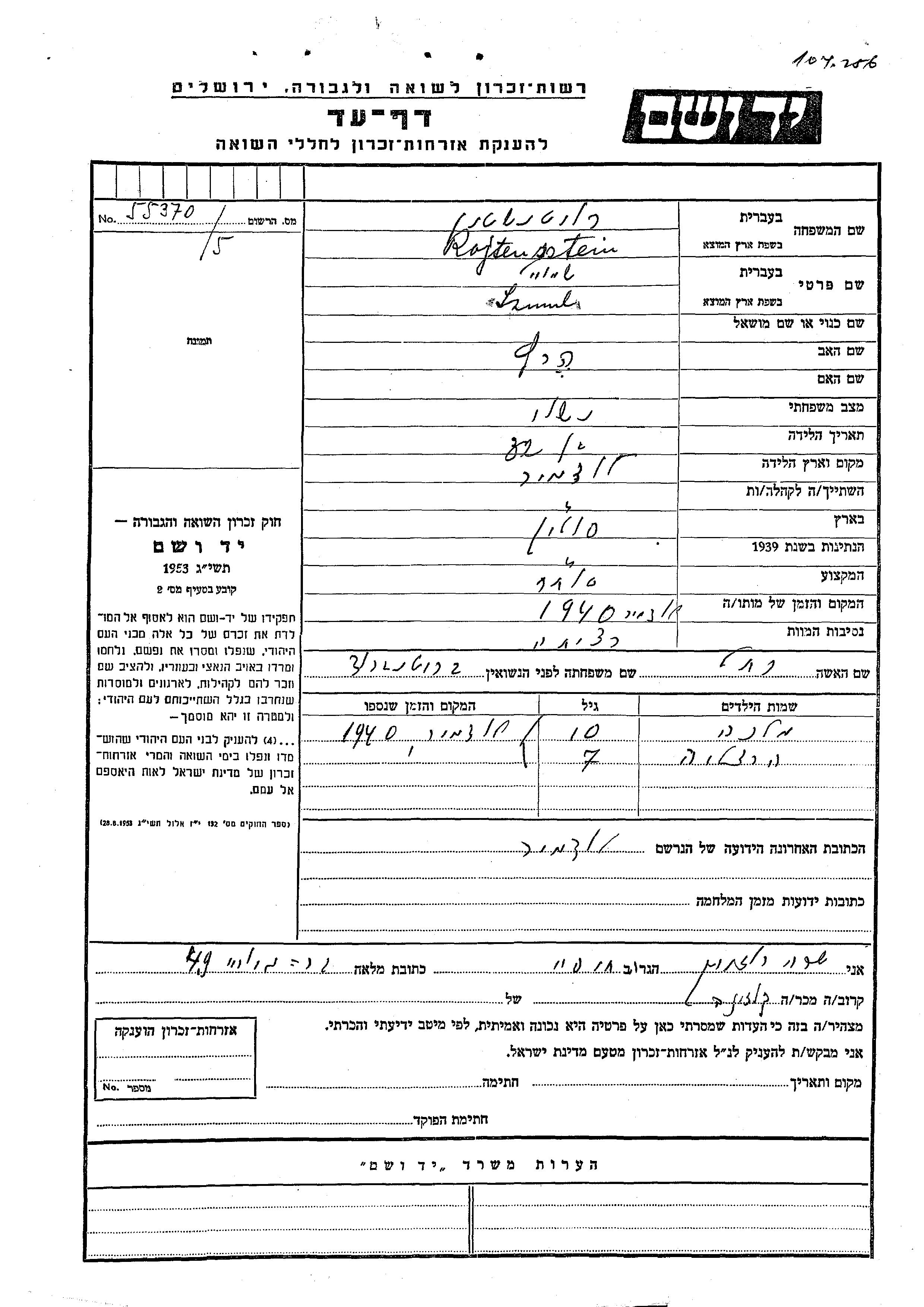 Yad Vashem - Pages of Testimony Names Memorial Collection