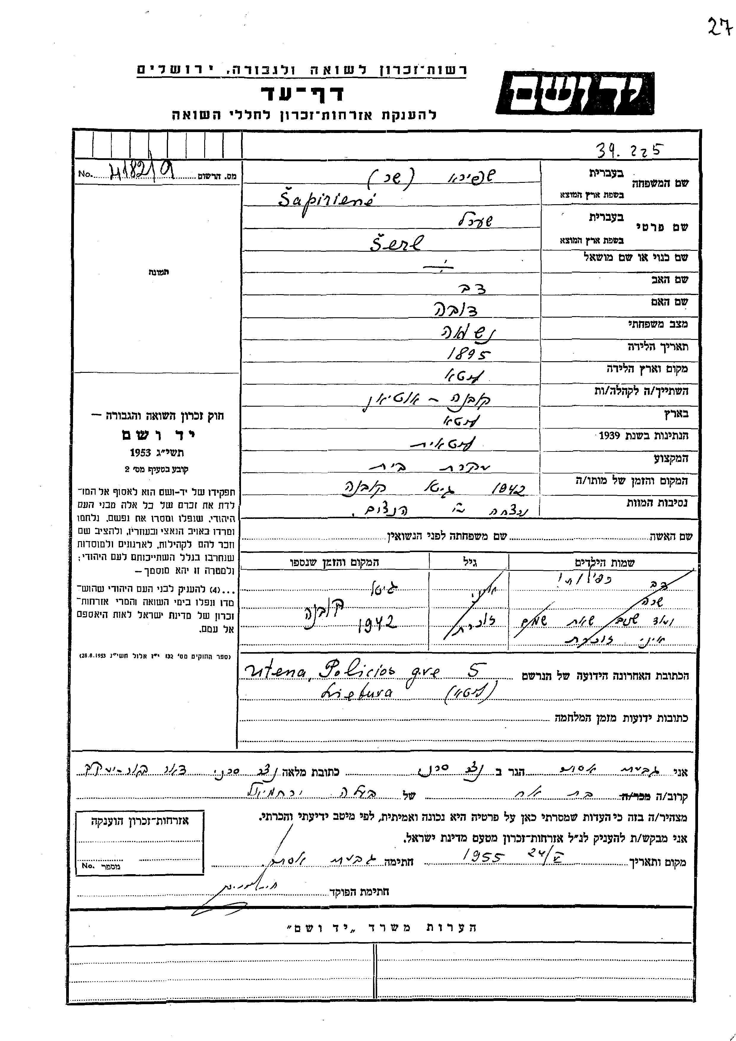 Yad Vashem - Pages of Testimony Names Memorial Collection
