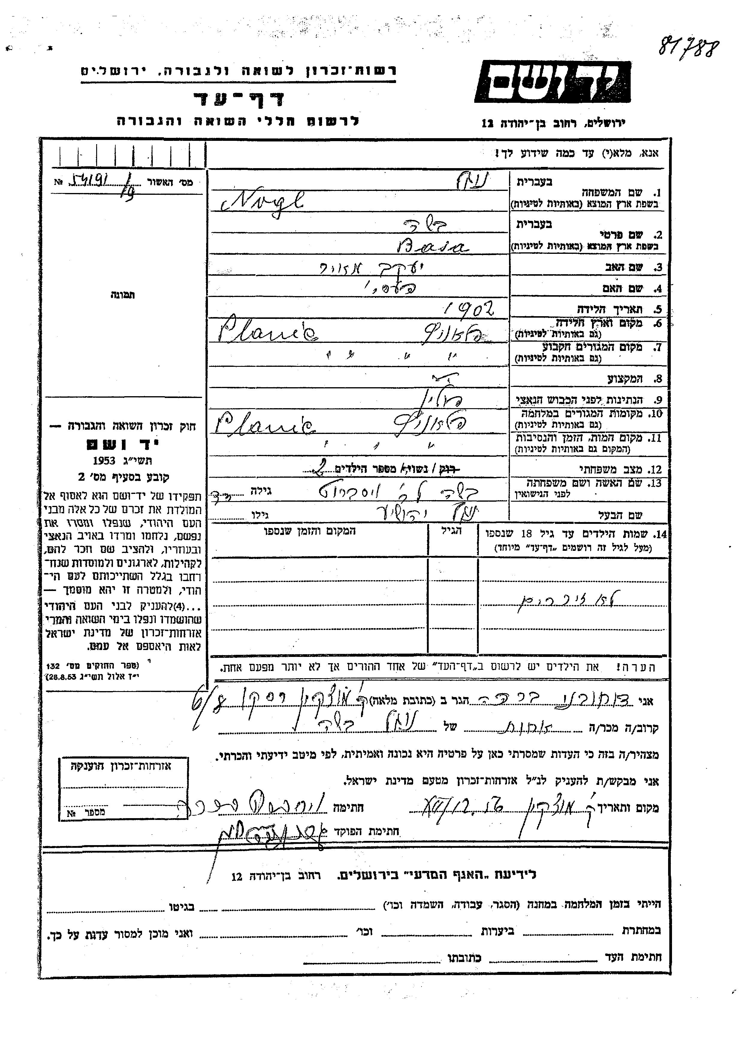 Yad Vashem - Pages of Testimony Names Memorial Collection