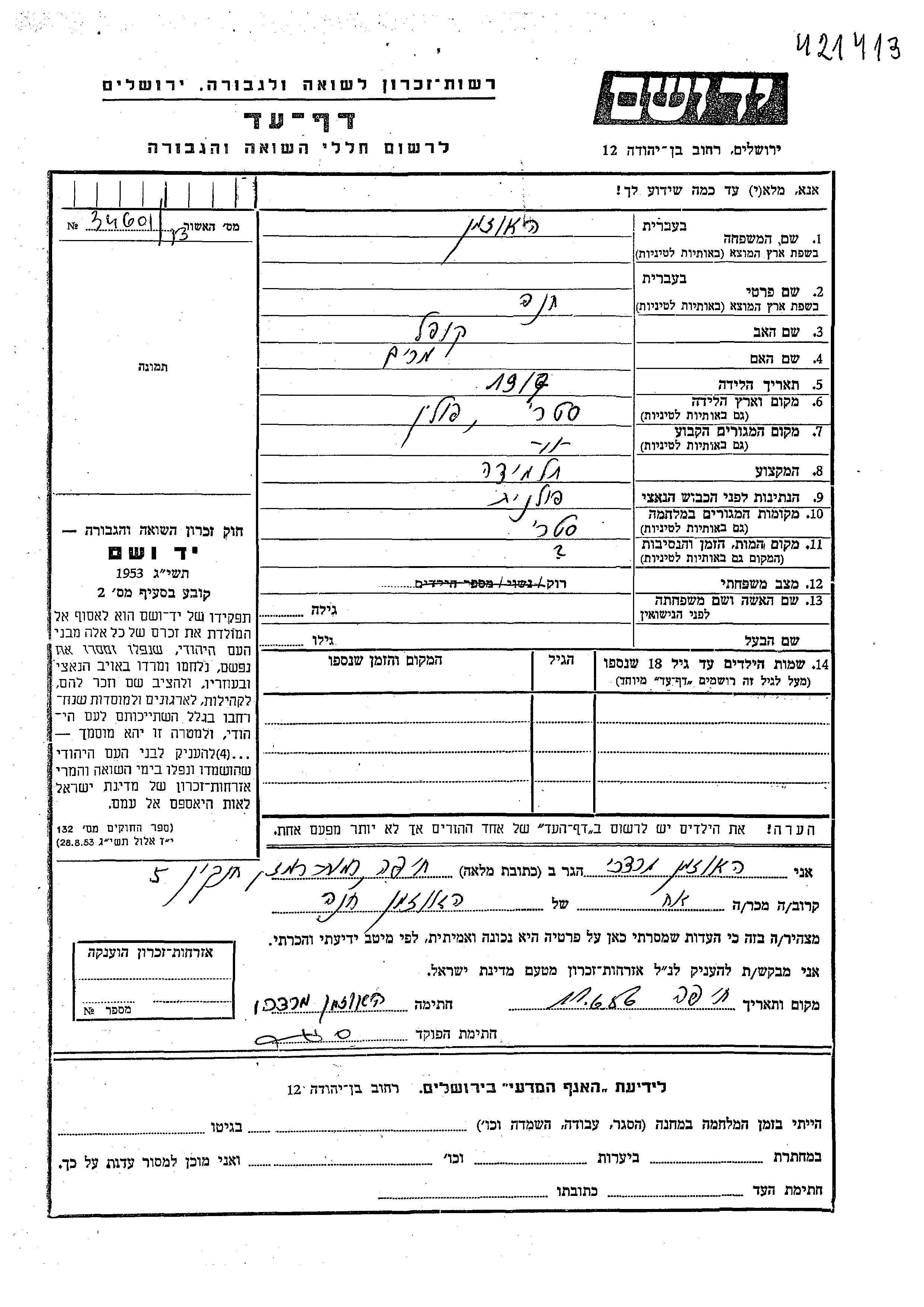 Yad Vashem - Pages of Testimony Names Memorial Collection