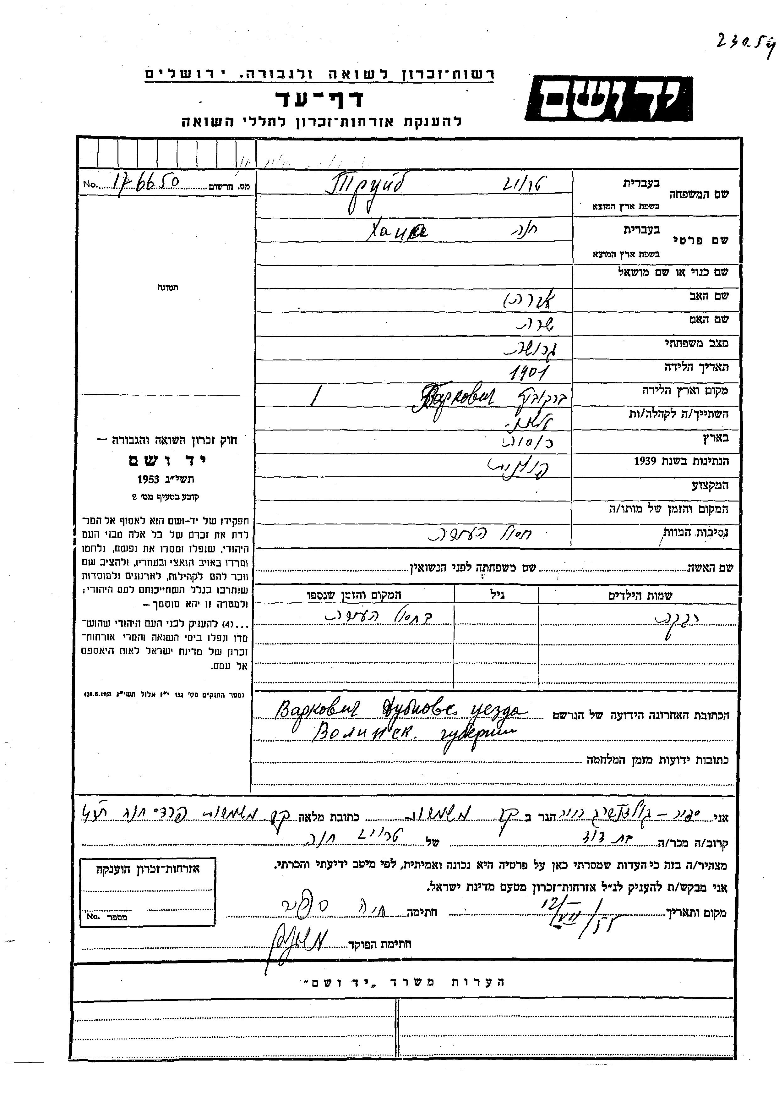 Yad Vashem - Pages of Testimony Names Memorial Collection