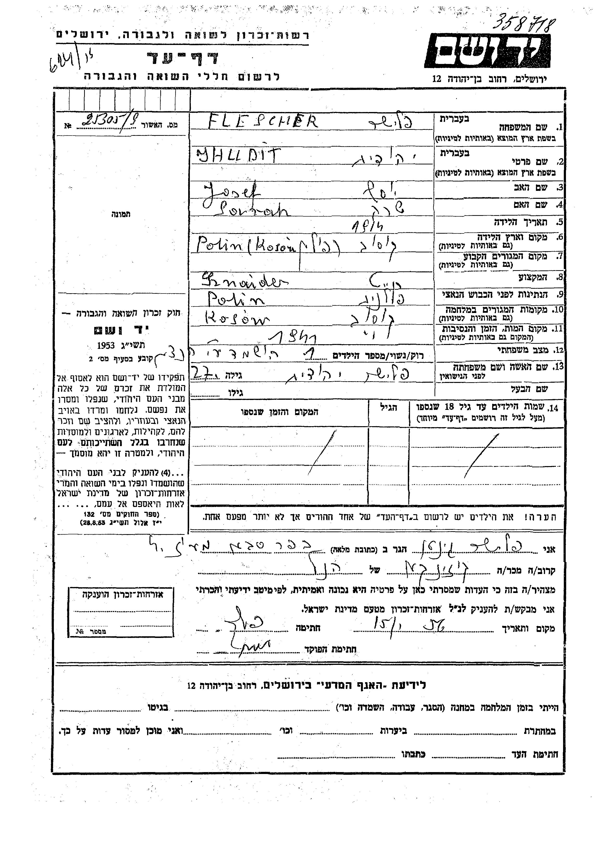 Flescher Felisher Jhudit 1914 endroit inconnu, Feuille de témoignage