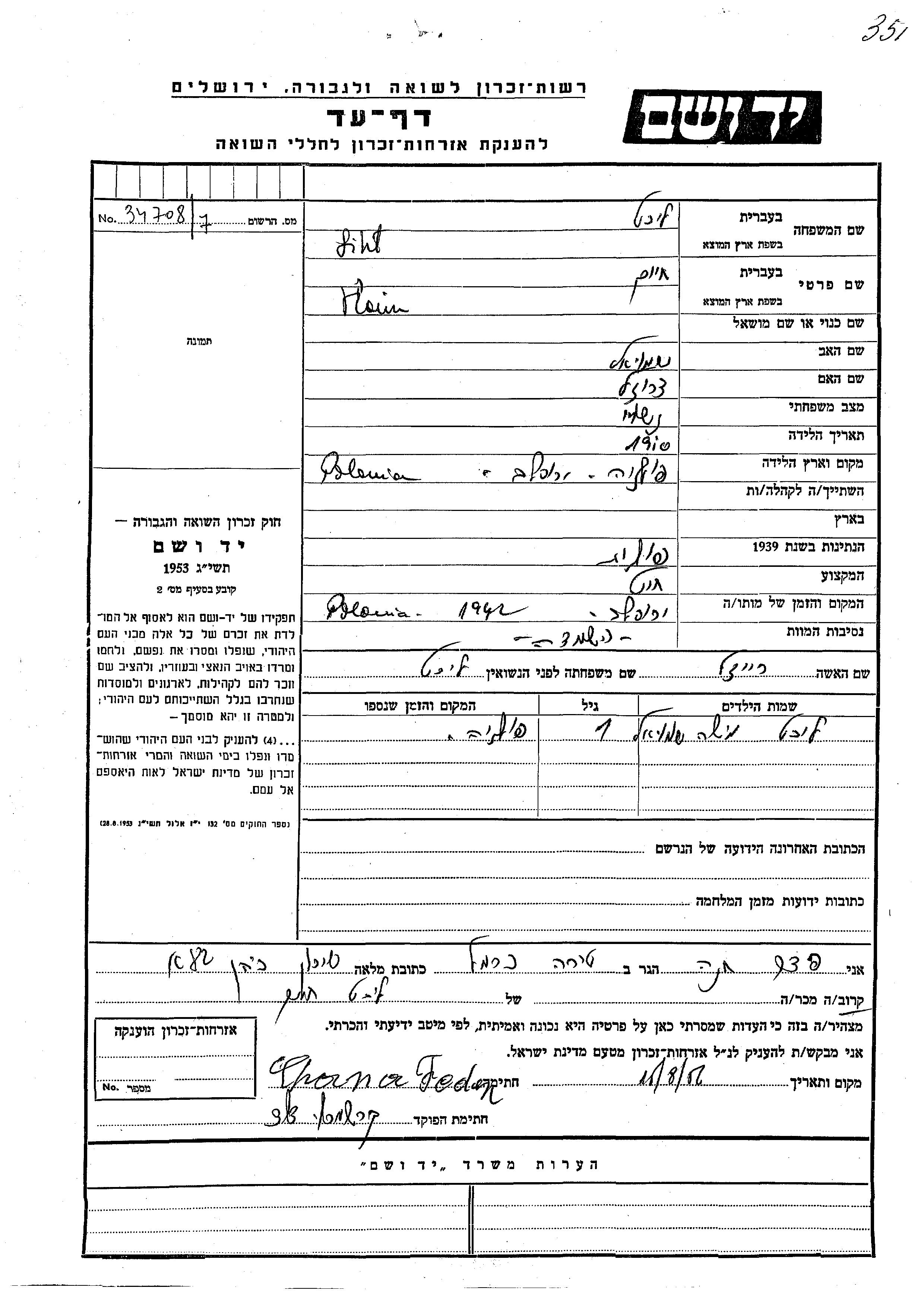 Yad Vashem - Pages of Testimony Names Memorial Collection