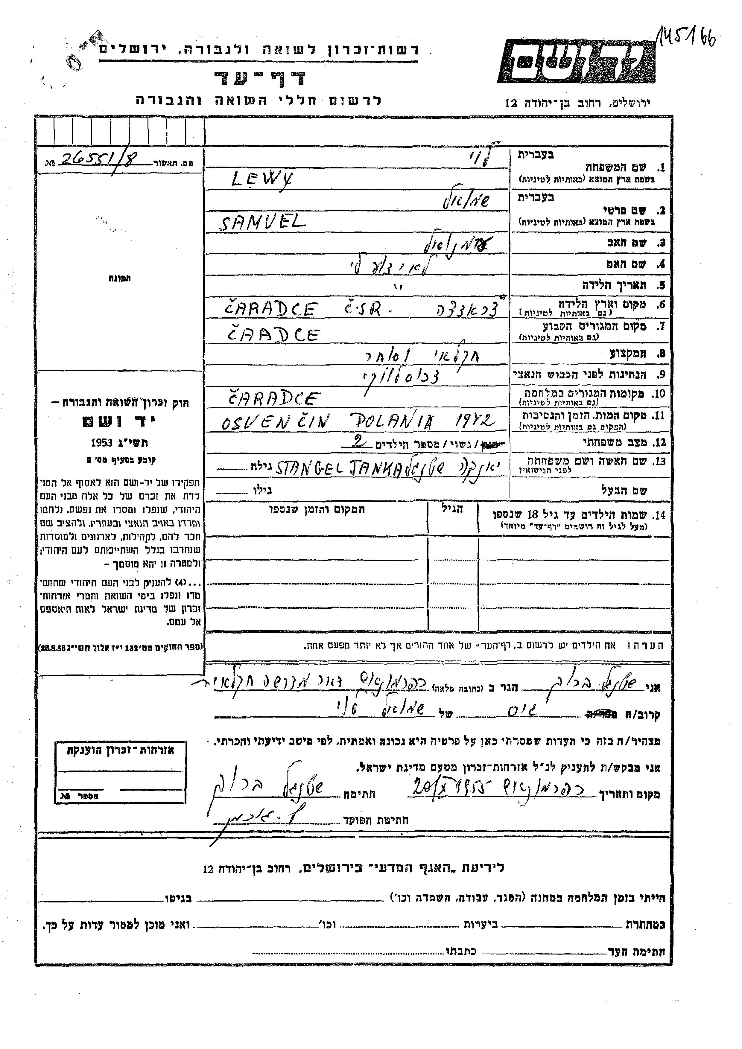 Yad Vashem - Pages of Testimony Names Memorial Collection