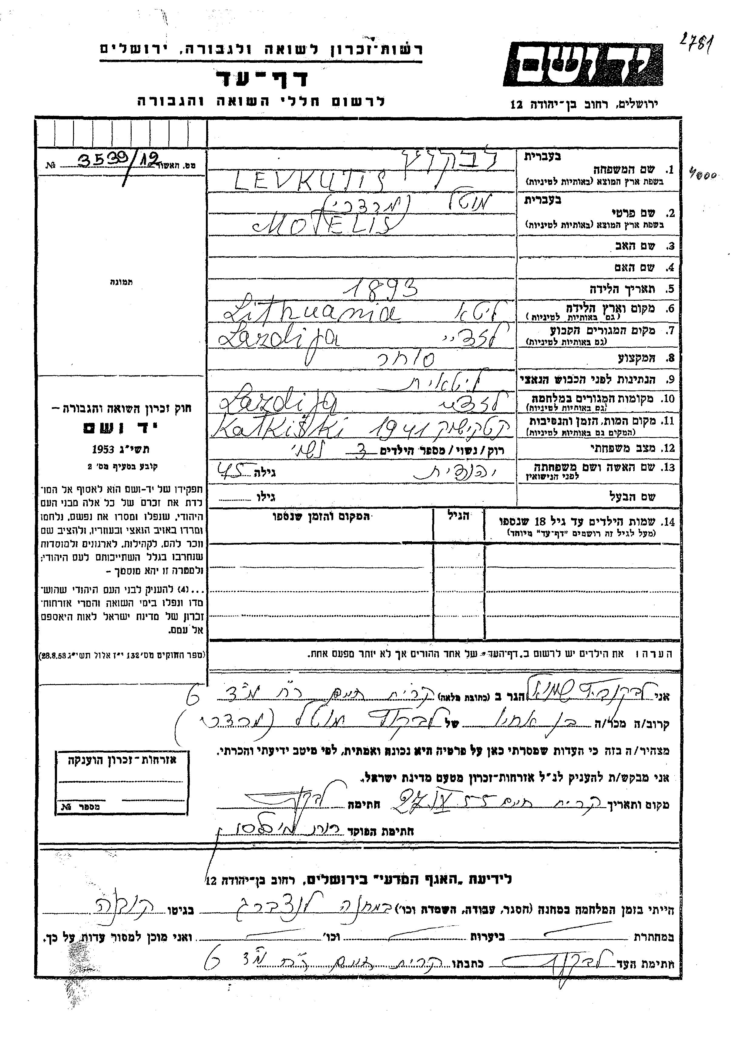 Levkutis Motelis 1893 Lazdijai, Lituanie Feuille de témoignage