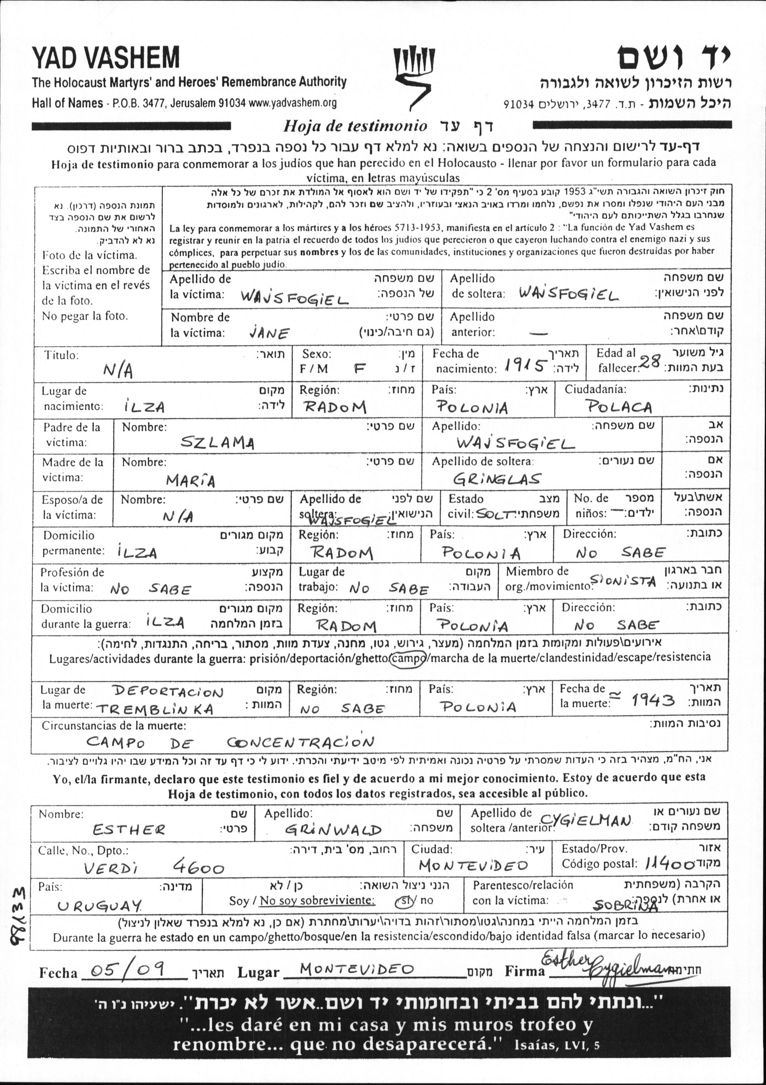 Yad Vashem - Pages of Testimony Names Memorial Collection