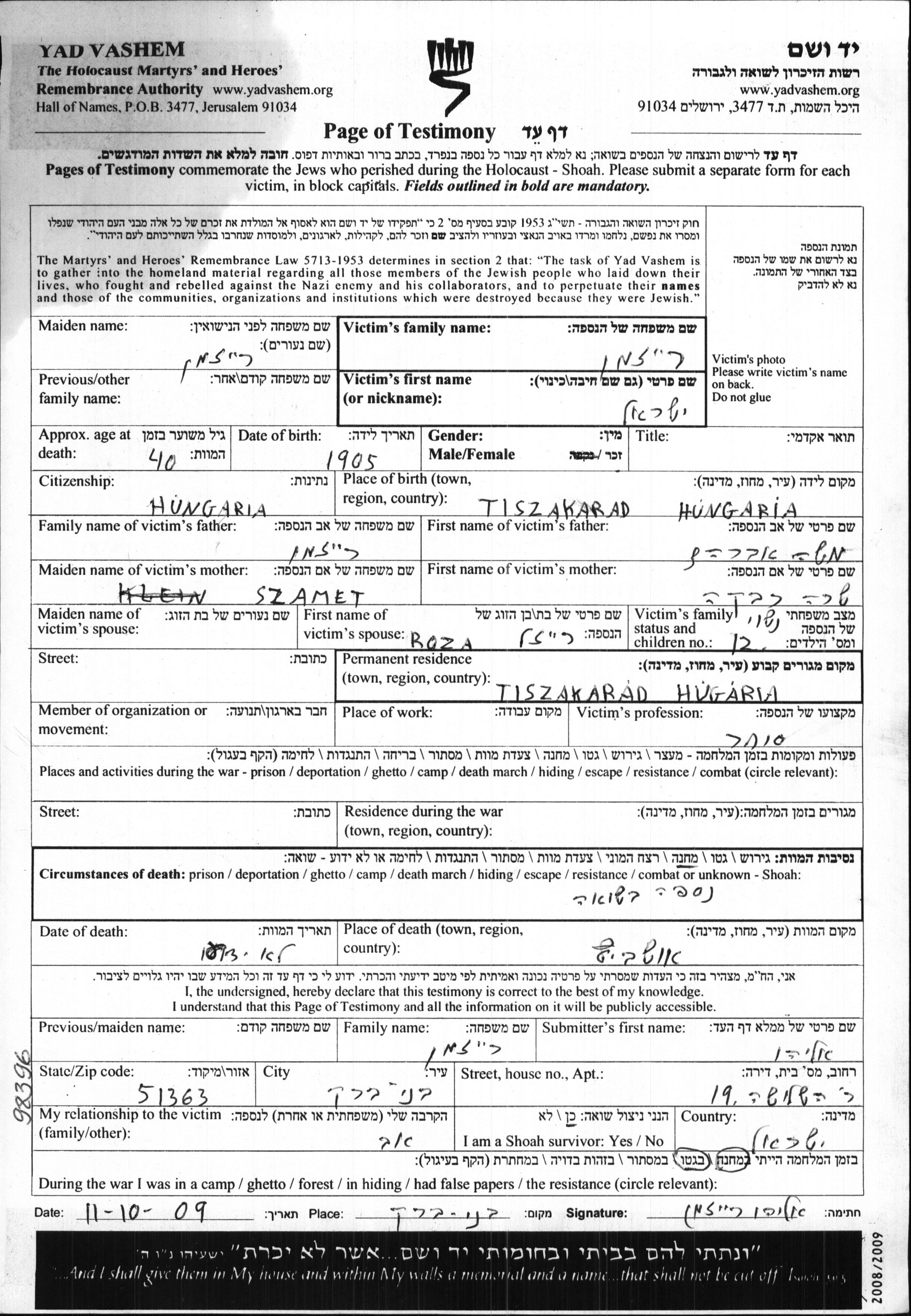 Yad Vashem - Pages of Testimony Names Memorial Collection