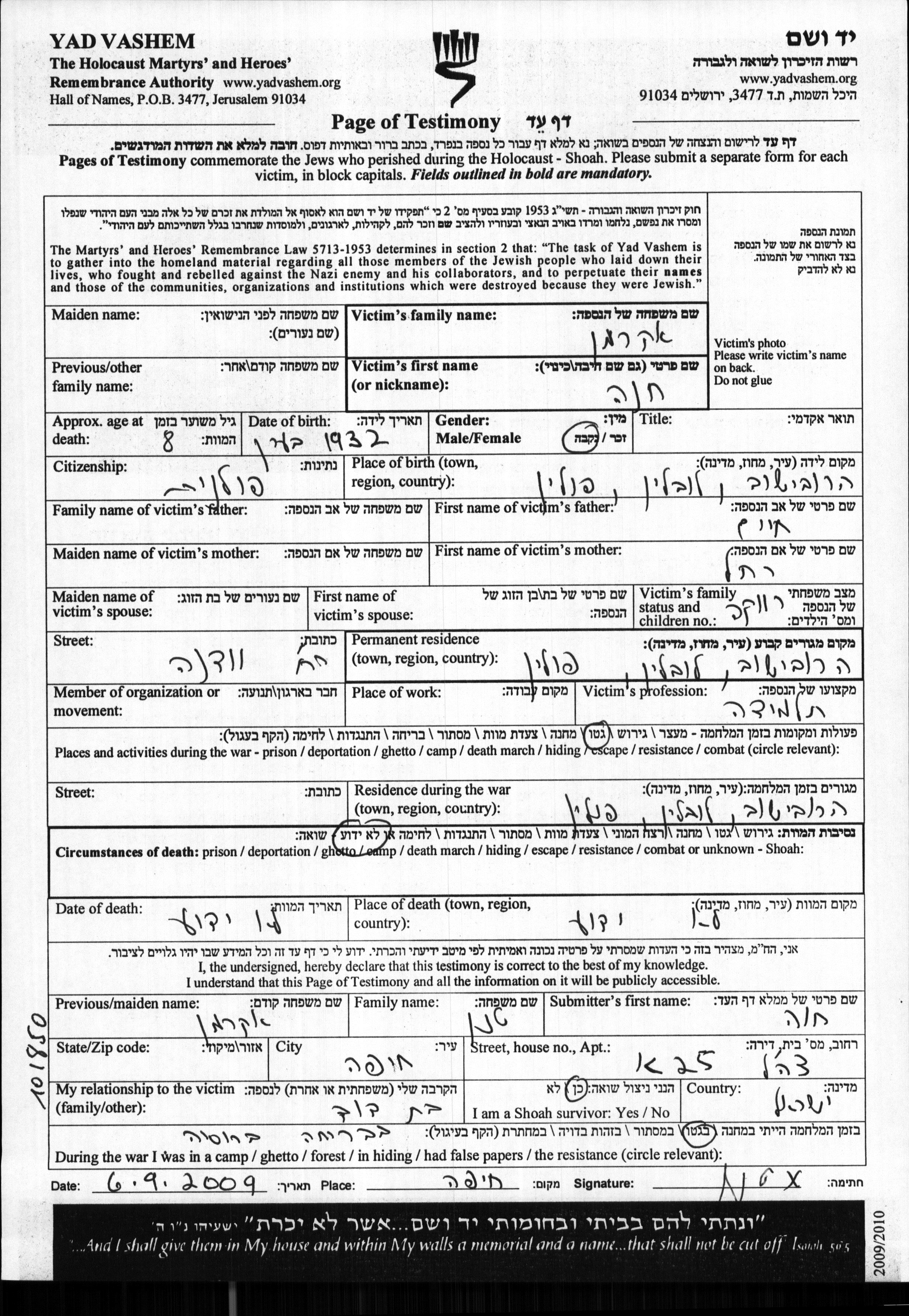 Yad Vashem - Pages of Testimony Names Memorial Collection
