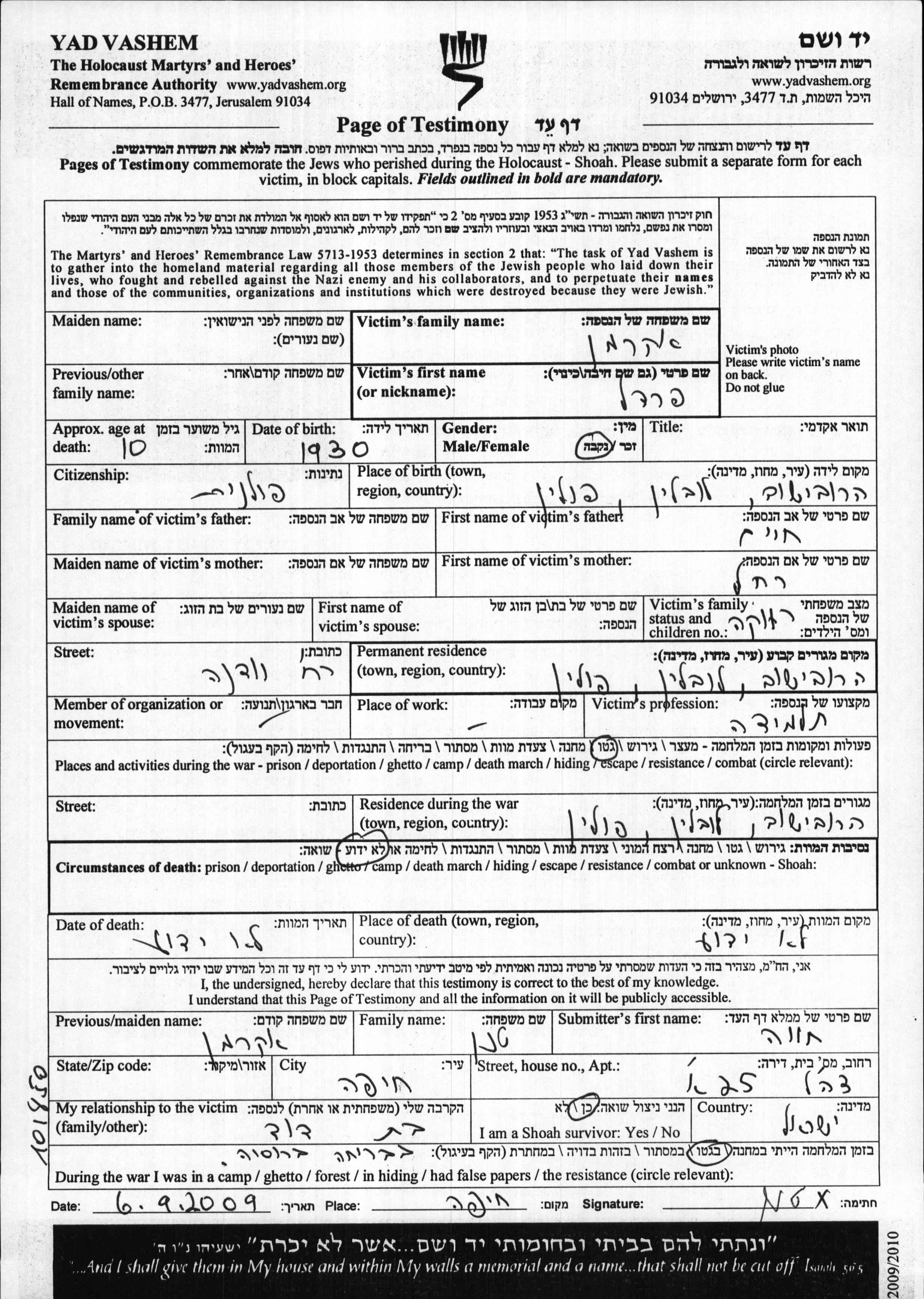 Yad Vashem - Pages of Testimony Names Memorial Collection