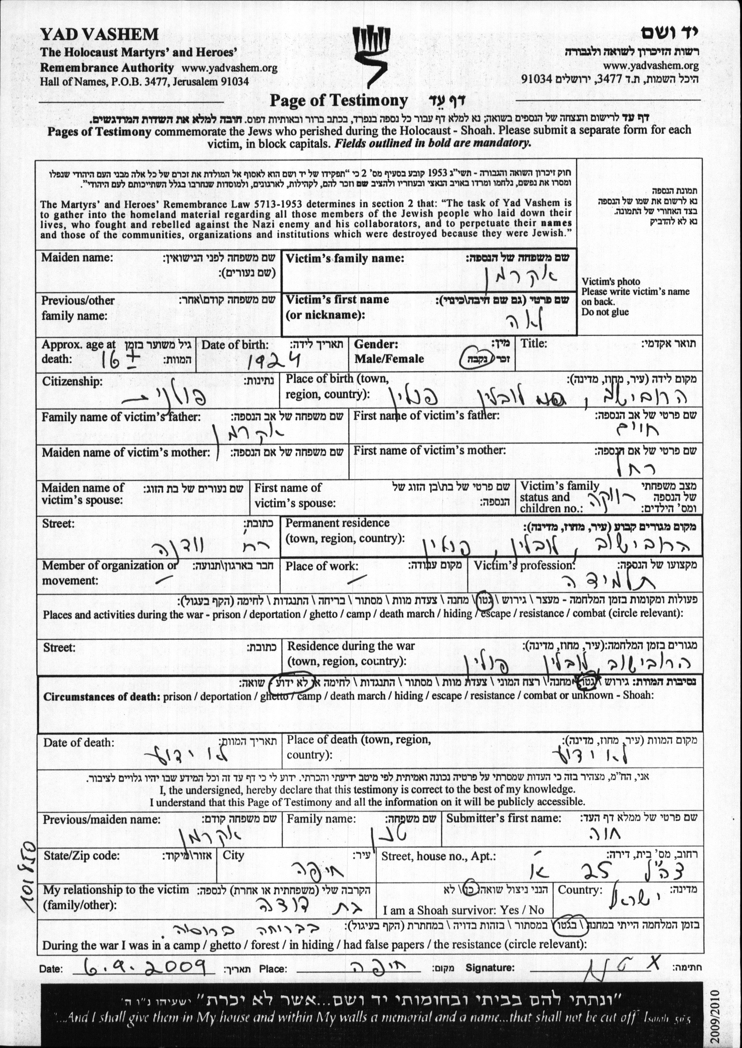 Yad Vashem - Pages of Testimony Names Memorial Collection