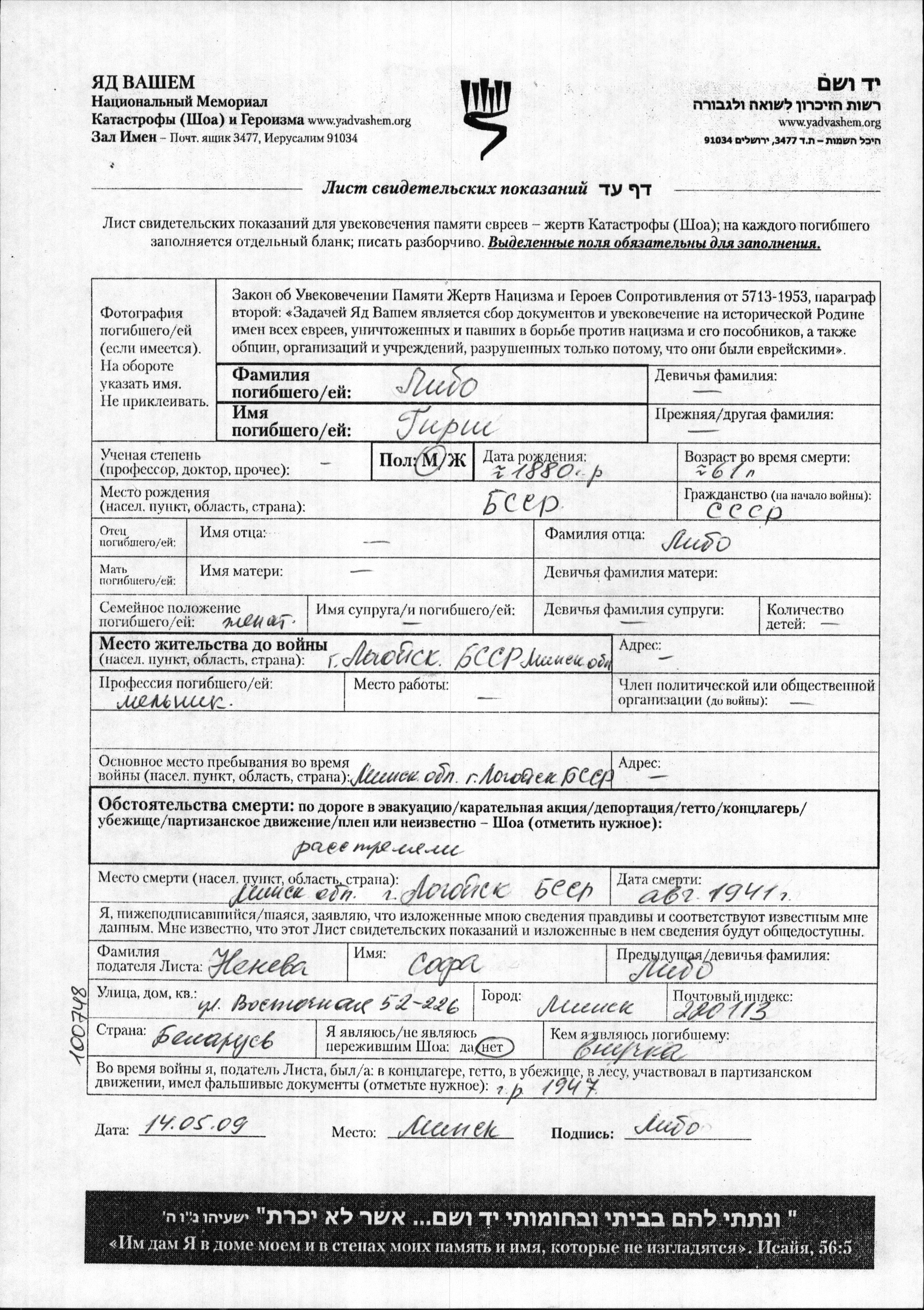 Yad Vashem - Pages of Testimony Names Memorial Collection
