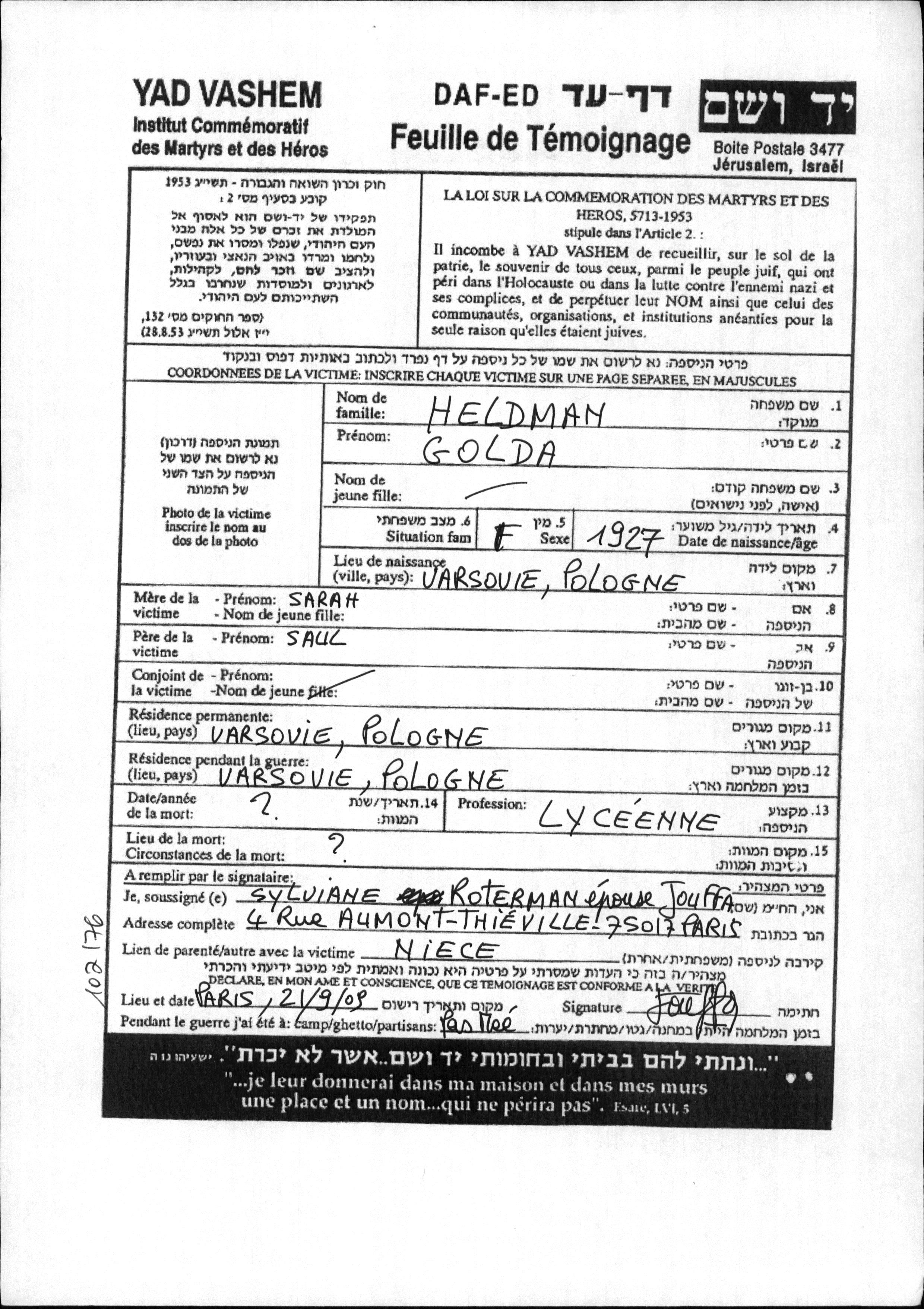 Durant la guerre/Shoah: