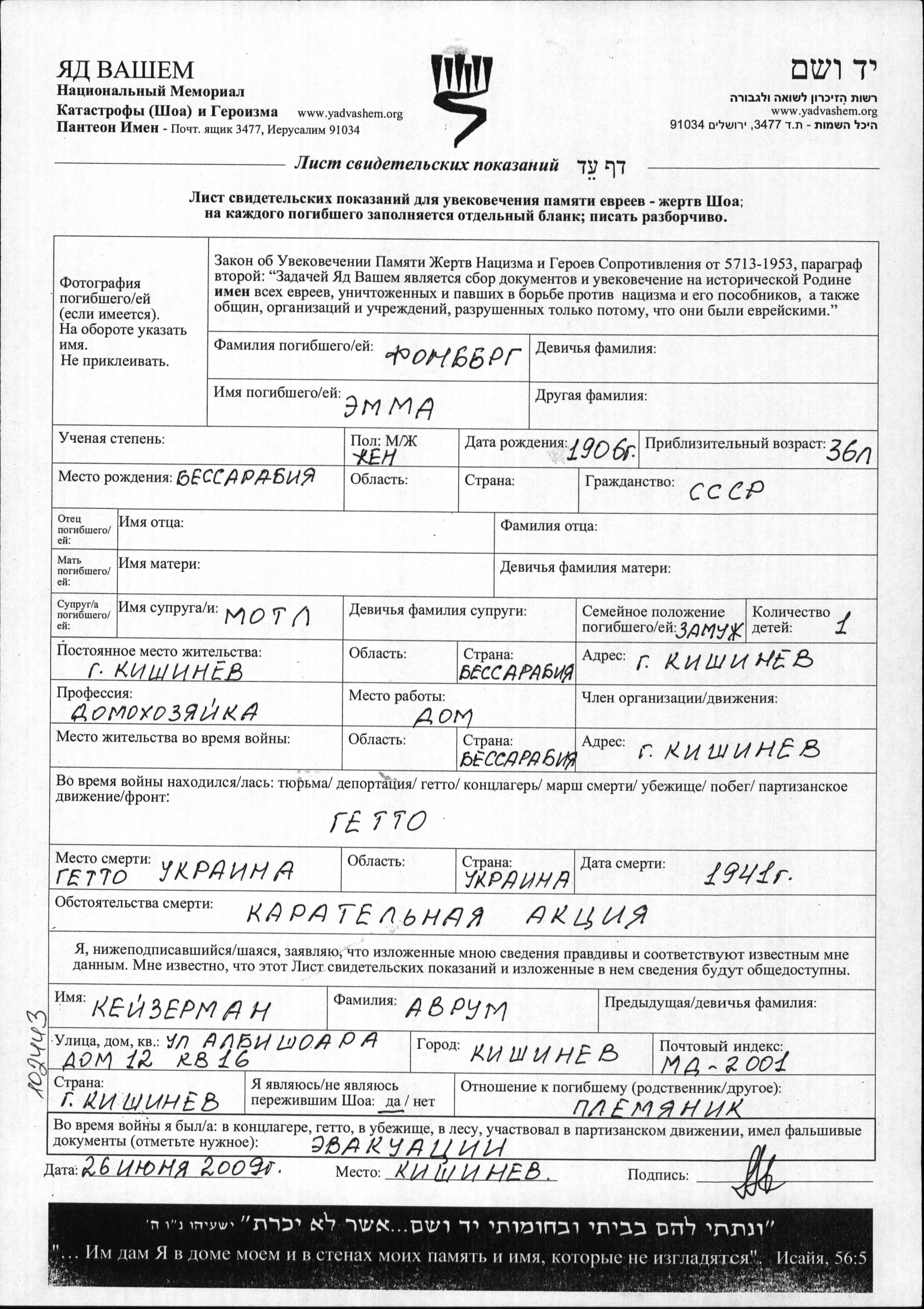 Au cours de la Shoah, les Juifs ont été assassinés de diverses façons : gazage, exécution par balle, immolation, noyade, enterrés vivants, épuisement par les travaux forcés, affamement, maladies et épidémies, privation de soins médicaux et de mesures de salubrité, etc. Certains Juifs ont mis fin à leur vie pour échapper à l'arrestation, aux persécutions ou aux souffrances permanentes et sans aucun espoir.