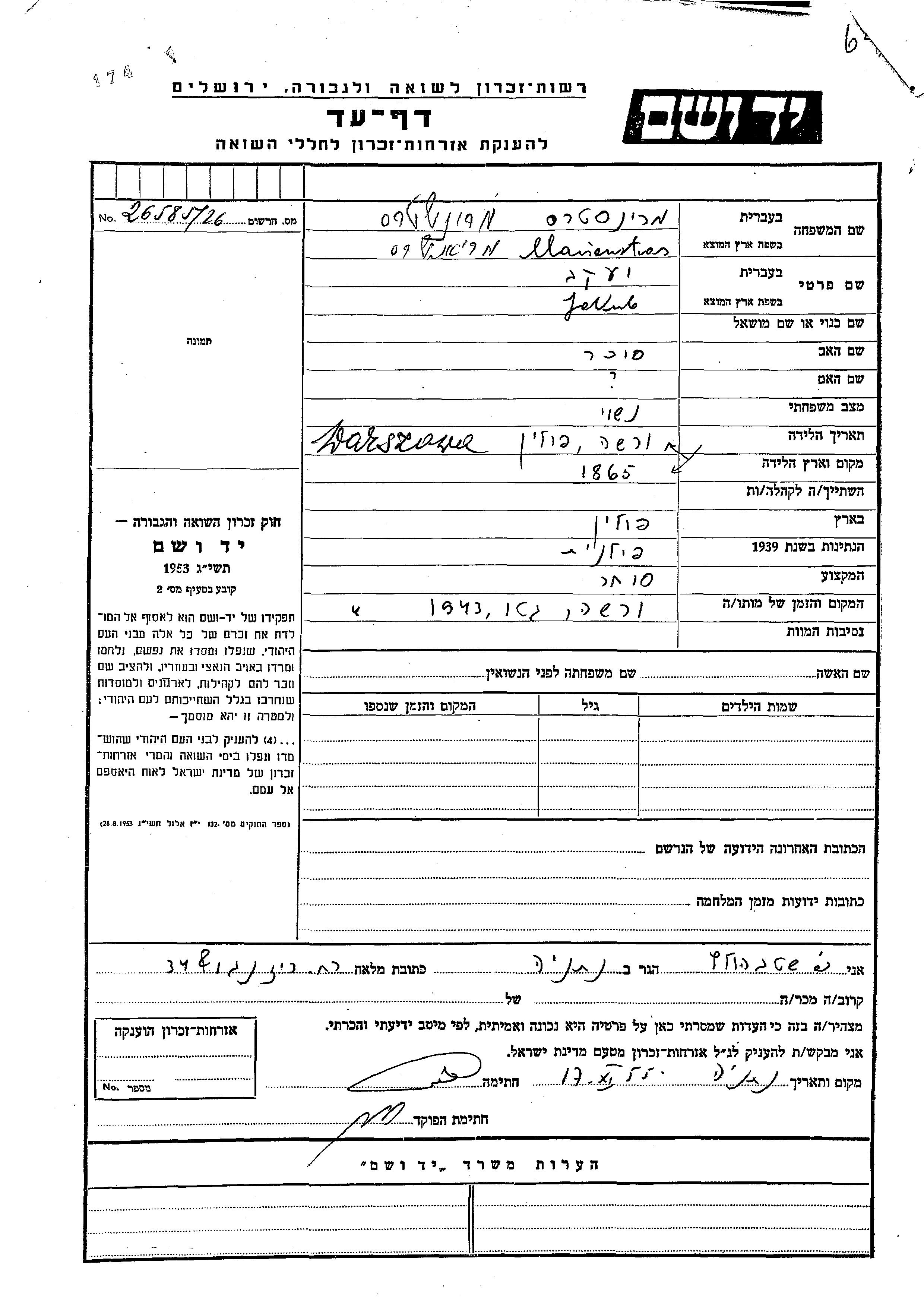 Yad Vashem - Pages of Testimony Names Memorial Collection