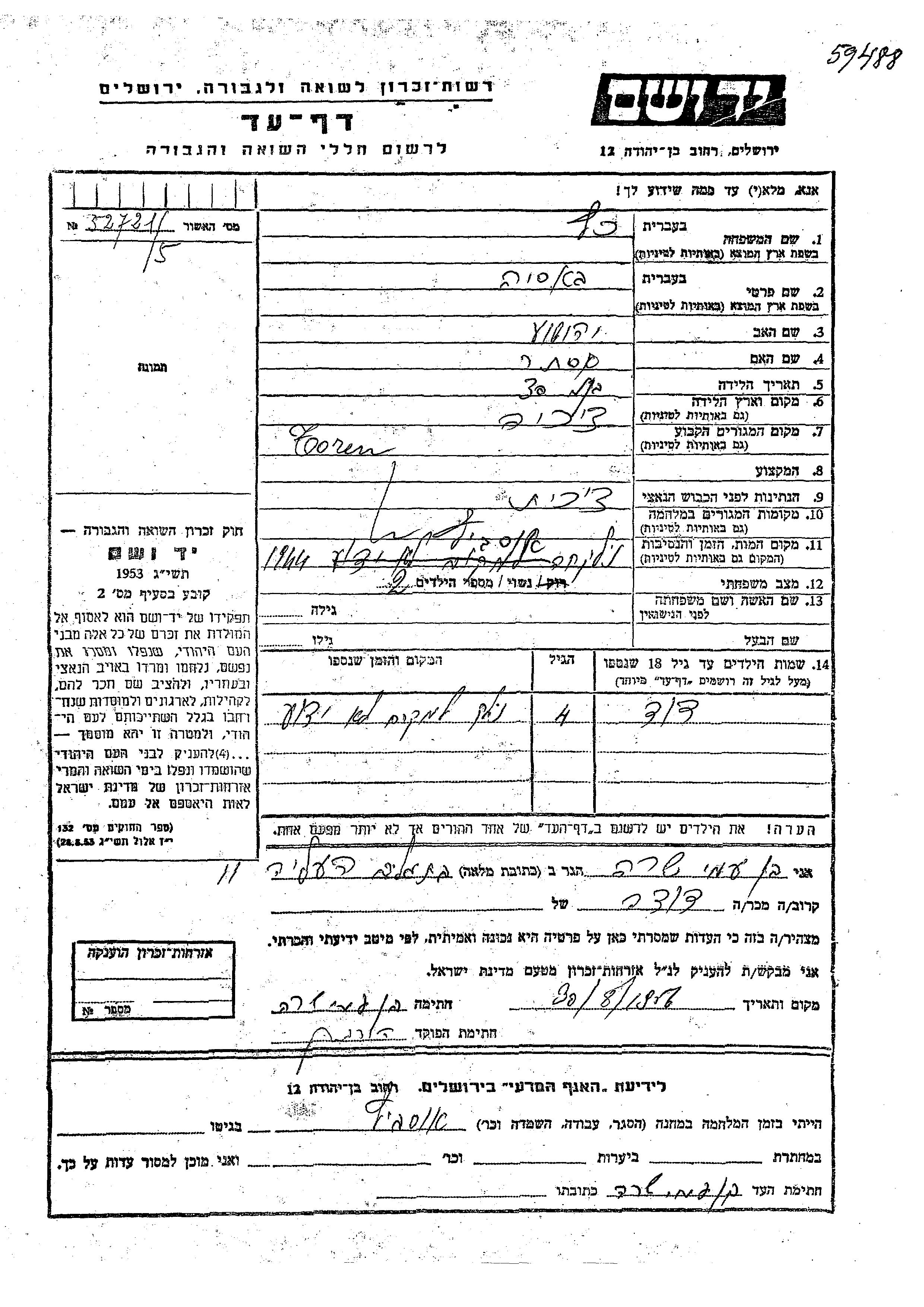 Yad Vashem - Pages of Testimony Names Memorial Collection