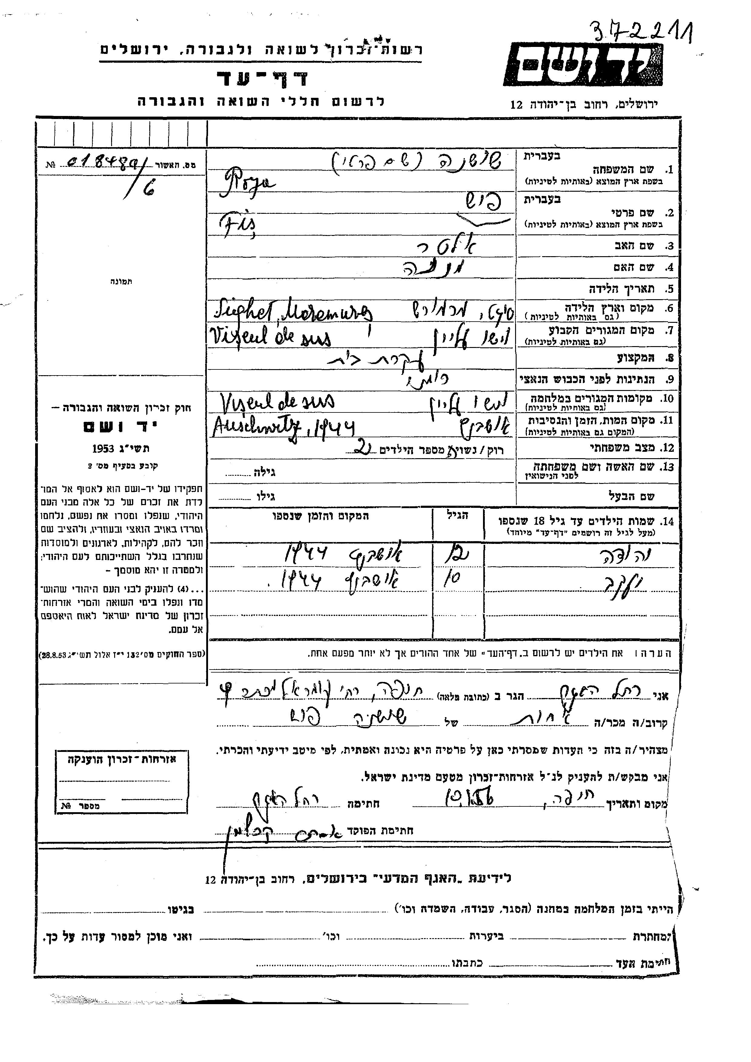 Yad Vashem - Pages of Testimony Names Memorial Collection