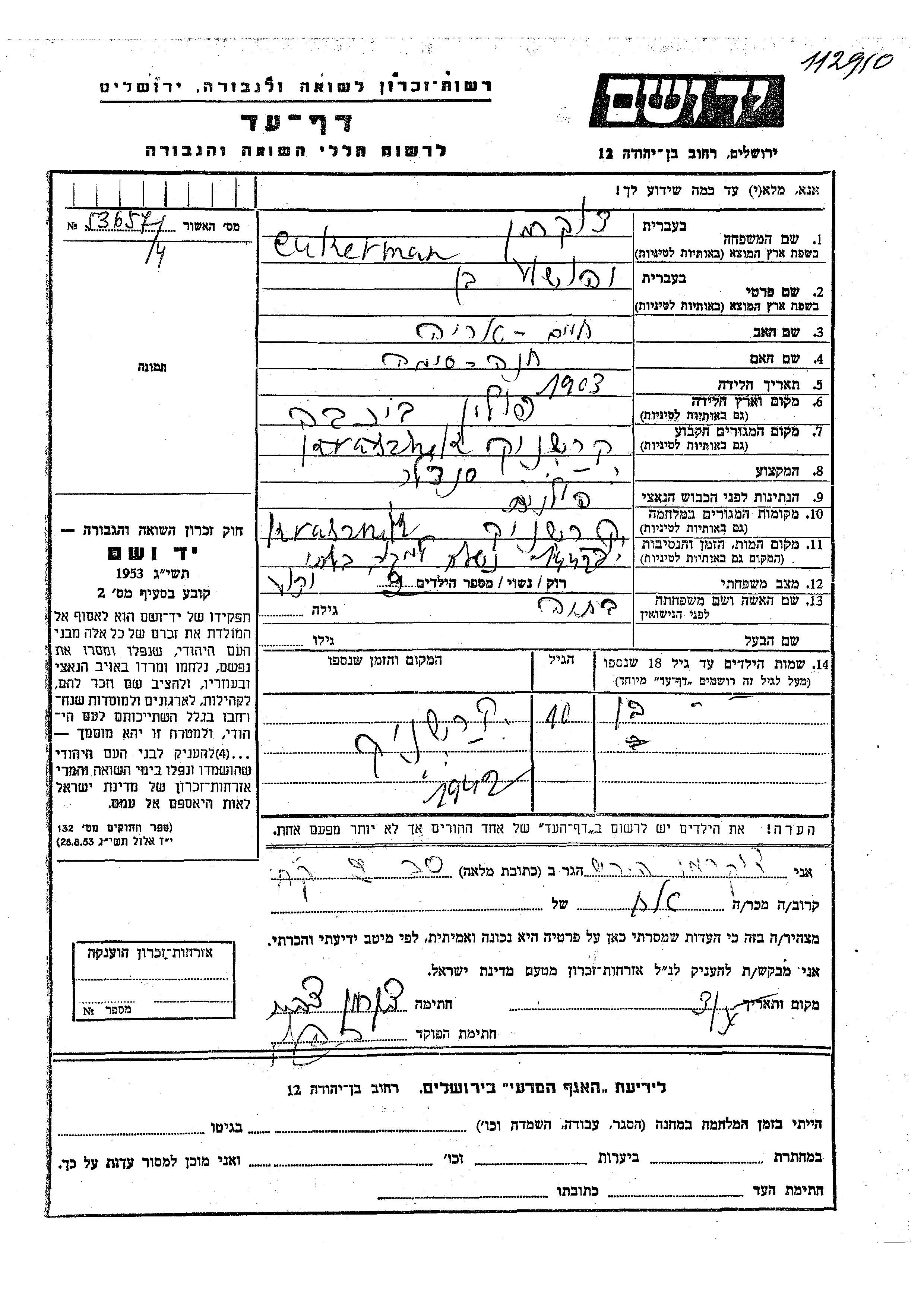 Ben Cukerman est né fils de Yehoshua Ben et de Batia. Il était Enfant. Avant la seconde guerre mondiale il vivait à Krasznik, Pologne. Au cours de la guerre, il était à Krasznik, Pologne.