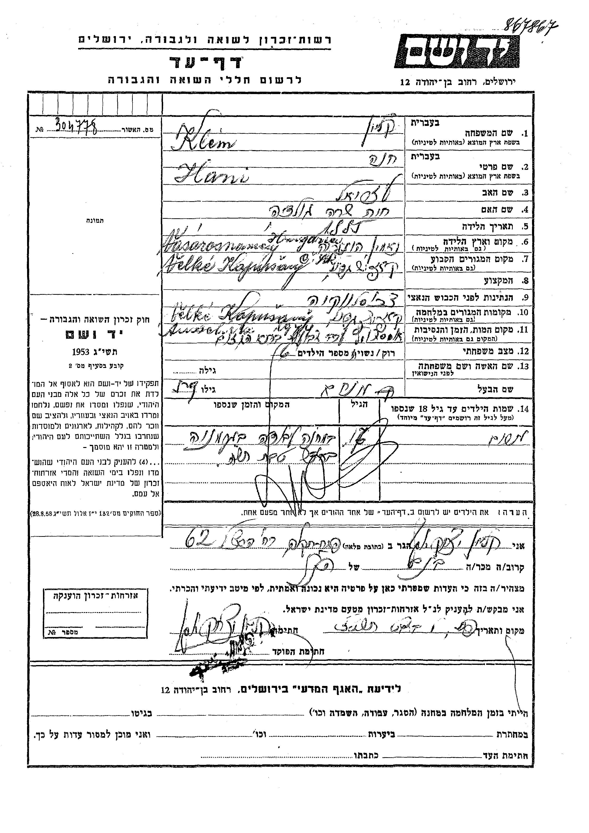 Yad Vashem - Pages of Testimony Names Memorial Collection