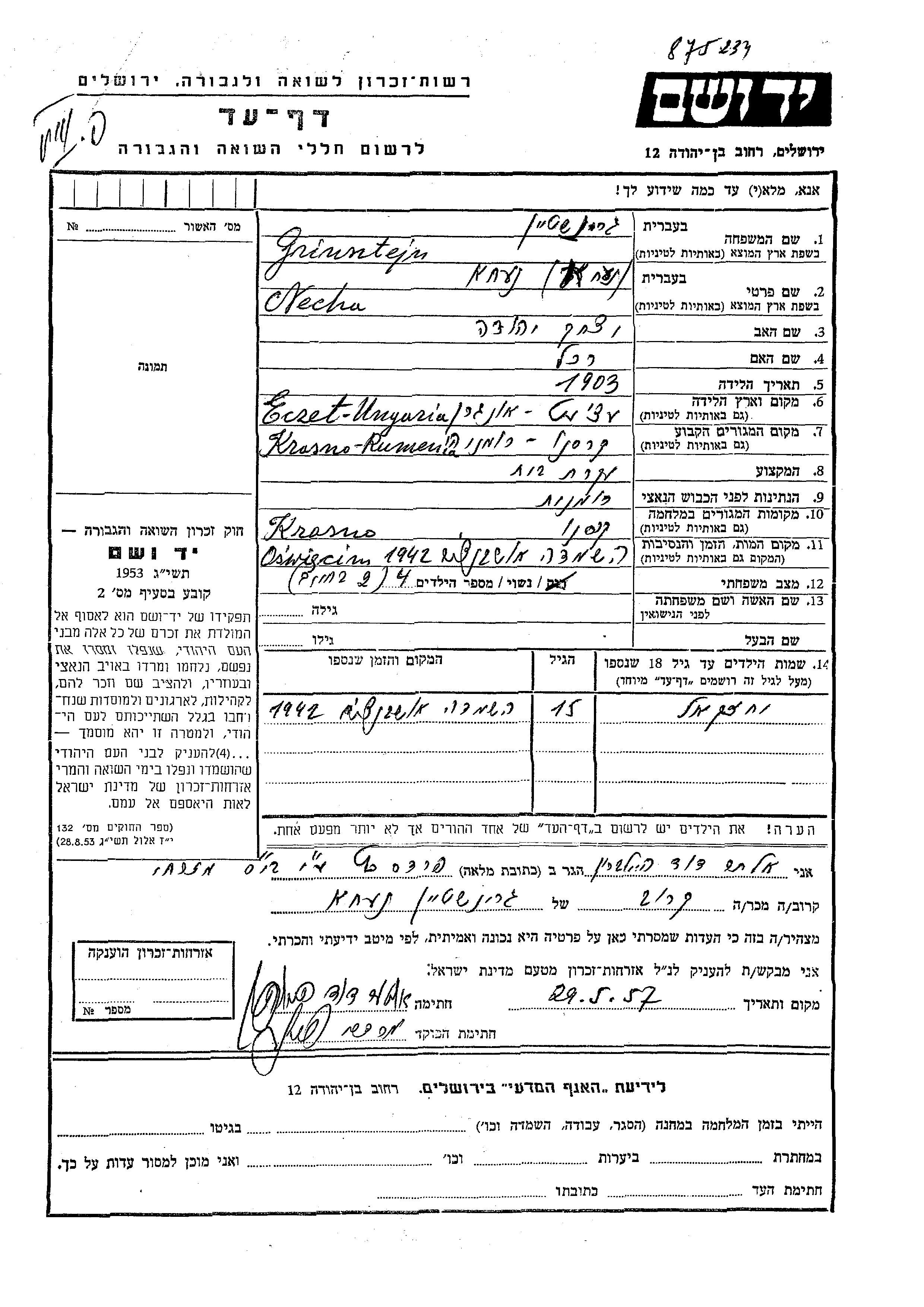 Yad Vashem - Pages of Testimony Names Memorial Collection