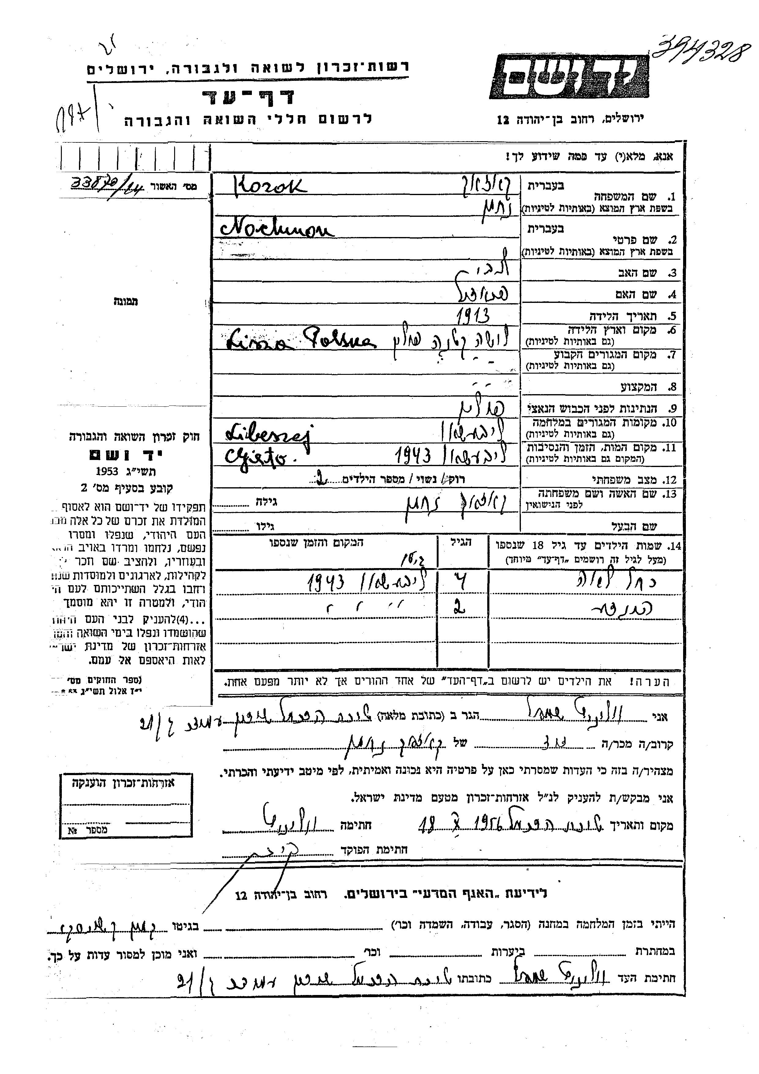 Yad Vashem - Pages of Testimony Names Memorial Collection