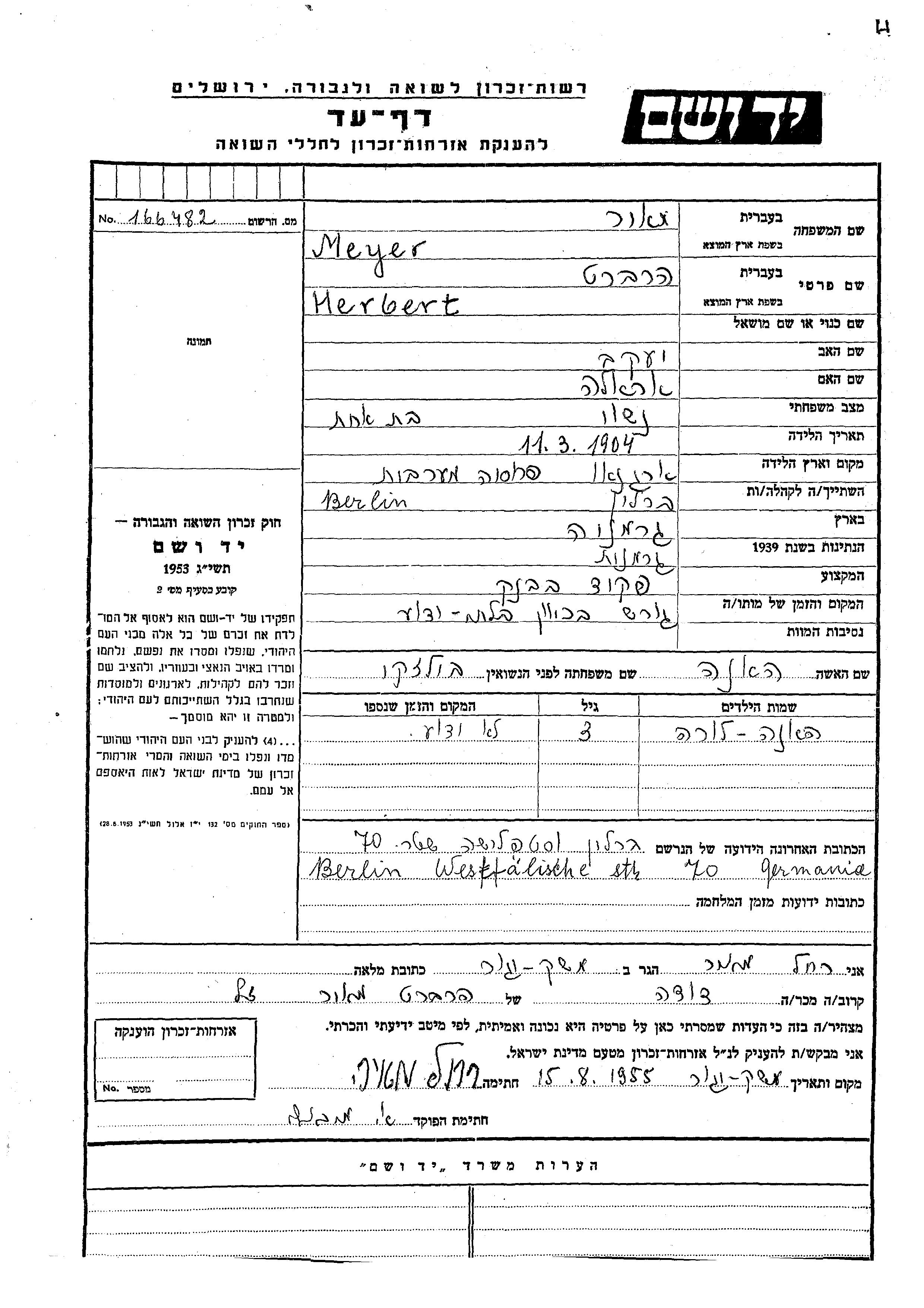 Meyer Hana Lora Berlin, Allemagne Feuille de témoignage