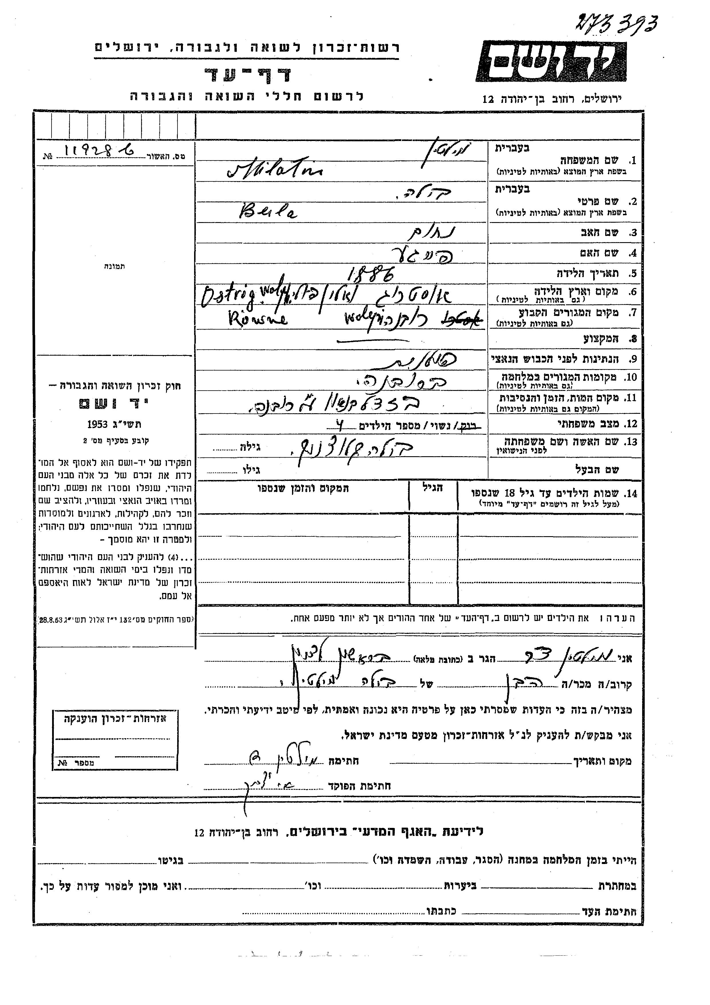 Yad Vashem - Pages of Testimony Names Memorial Collection