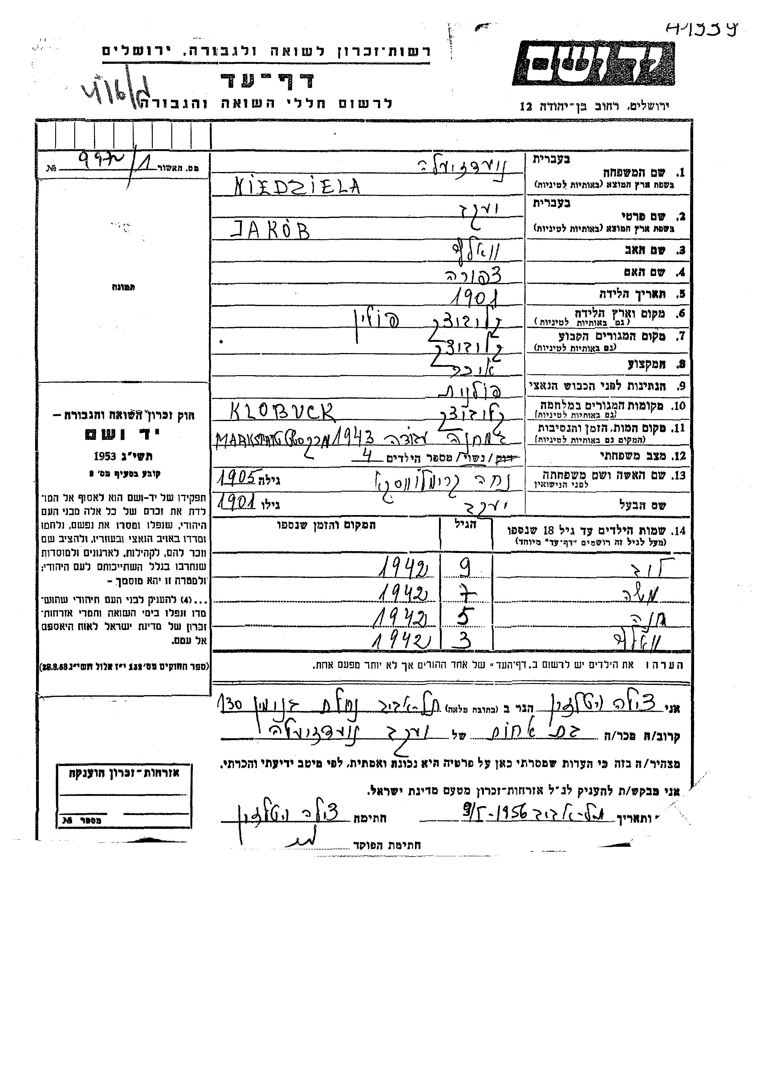 Yad Vashem - Pages of Testimony Names Memorial Collection