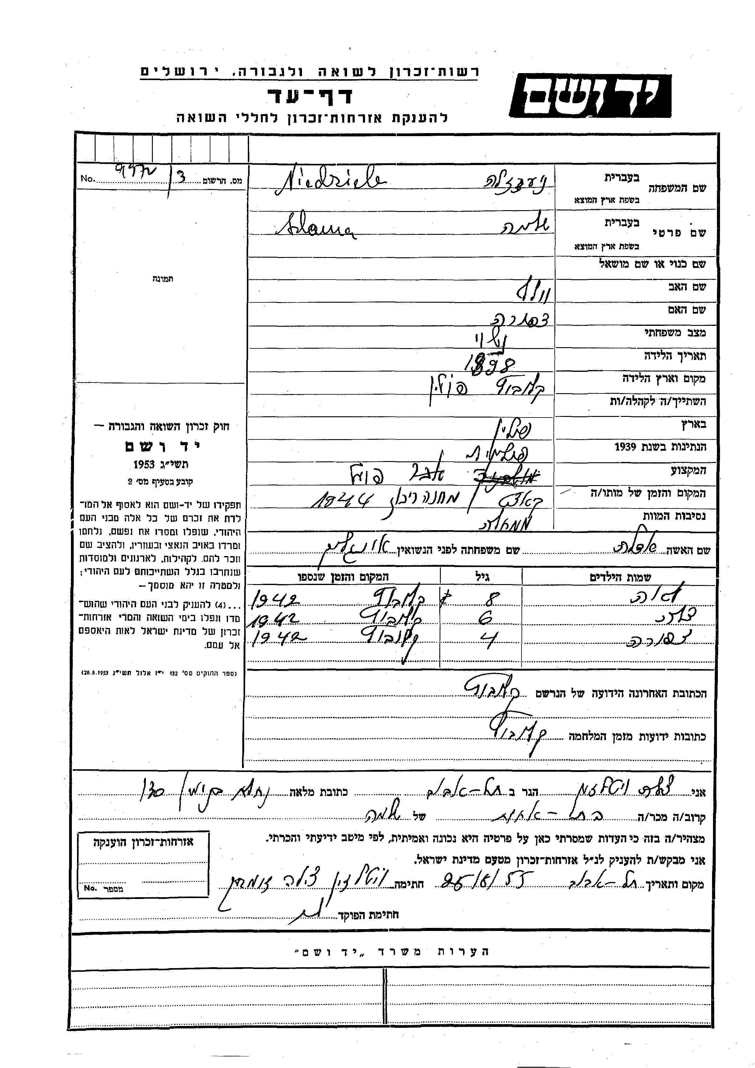 Yad Vashem - Pages of Testimony Names Memorial Collection