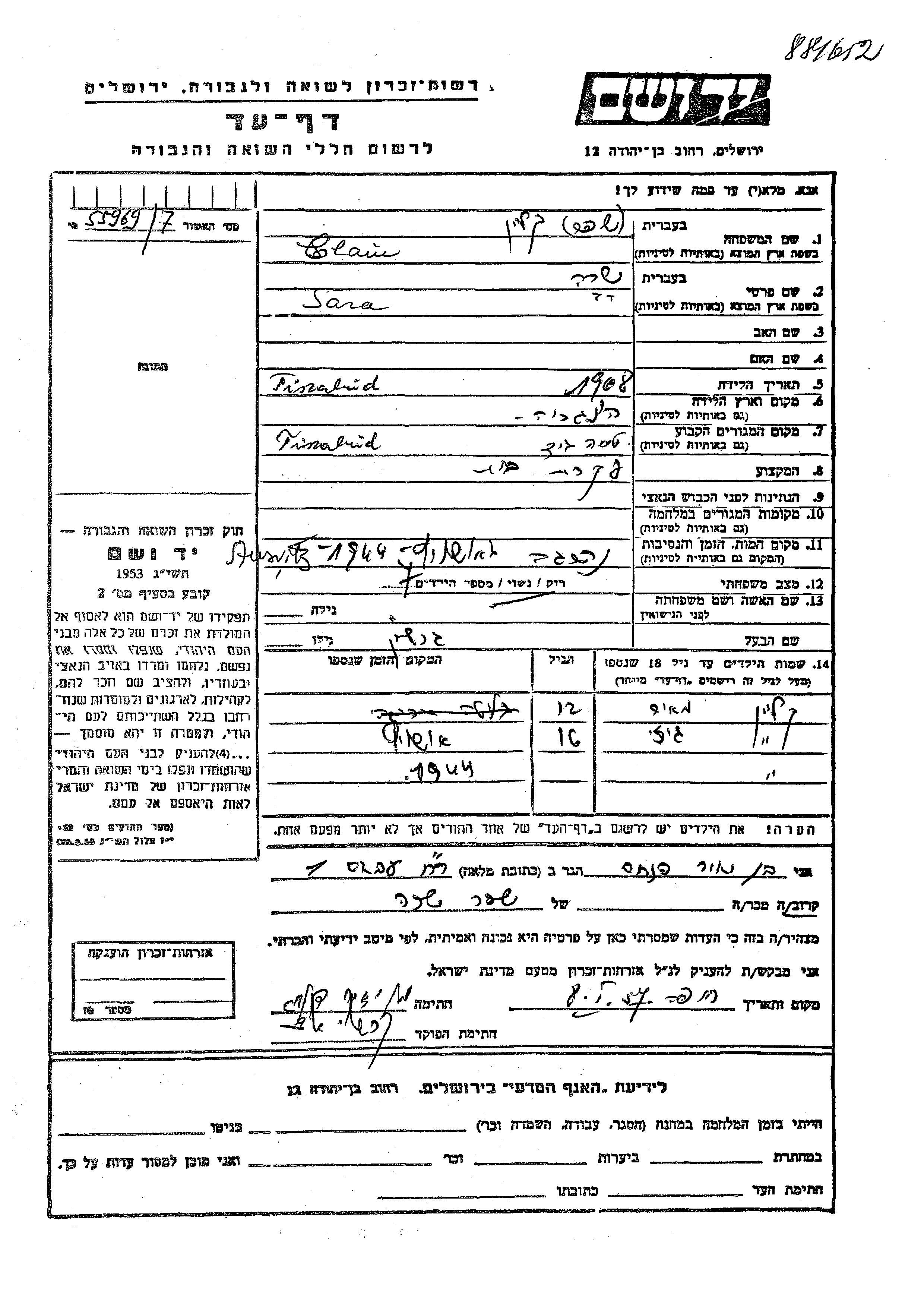 Yad Vashem - Pages of Testimony Names Memorial Collection