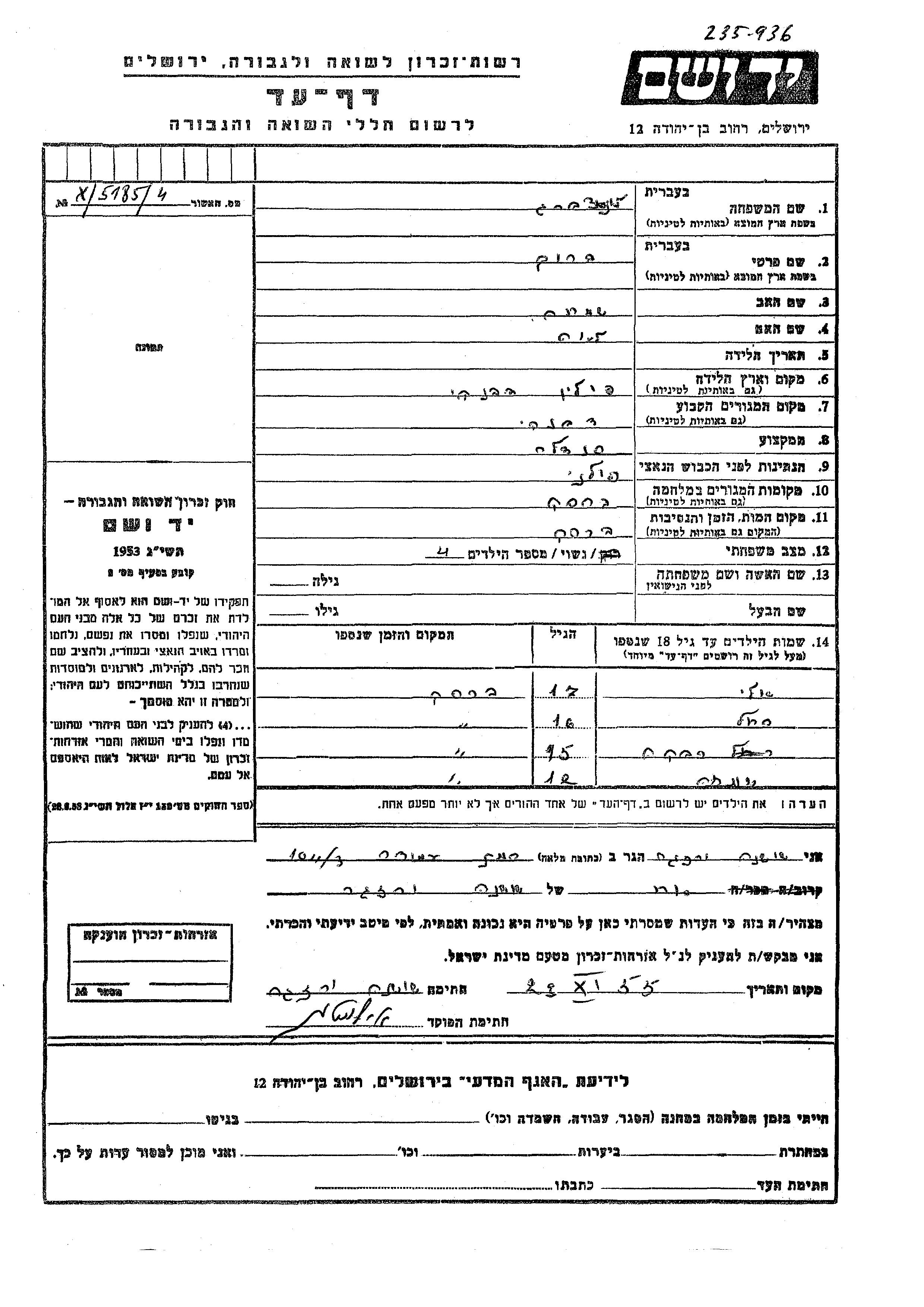 Yad Vashem - Pages of Testimony Names Memorial Collection