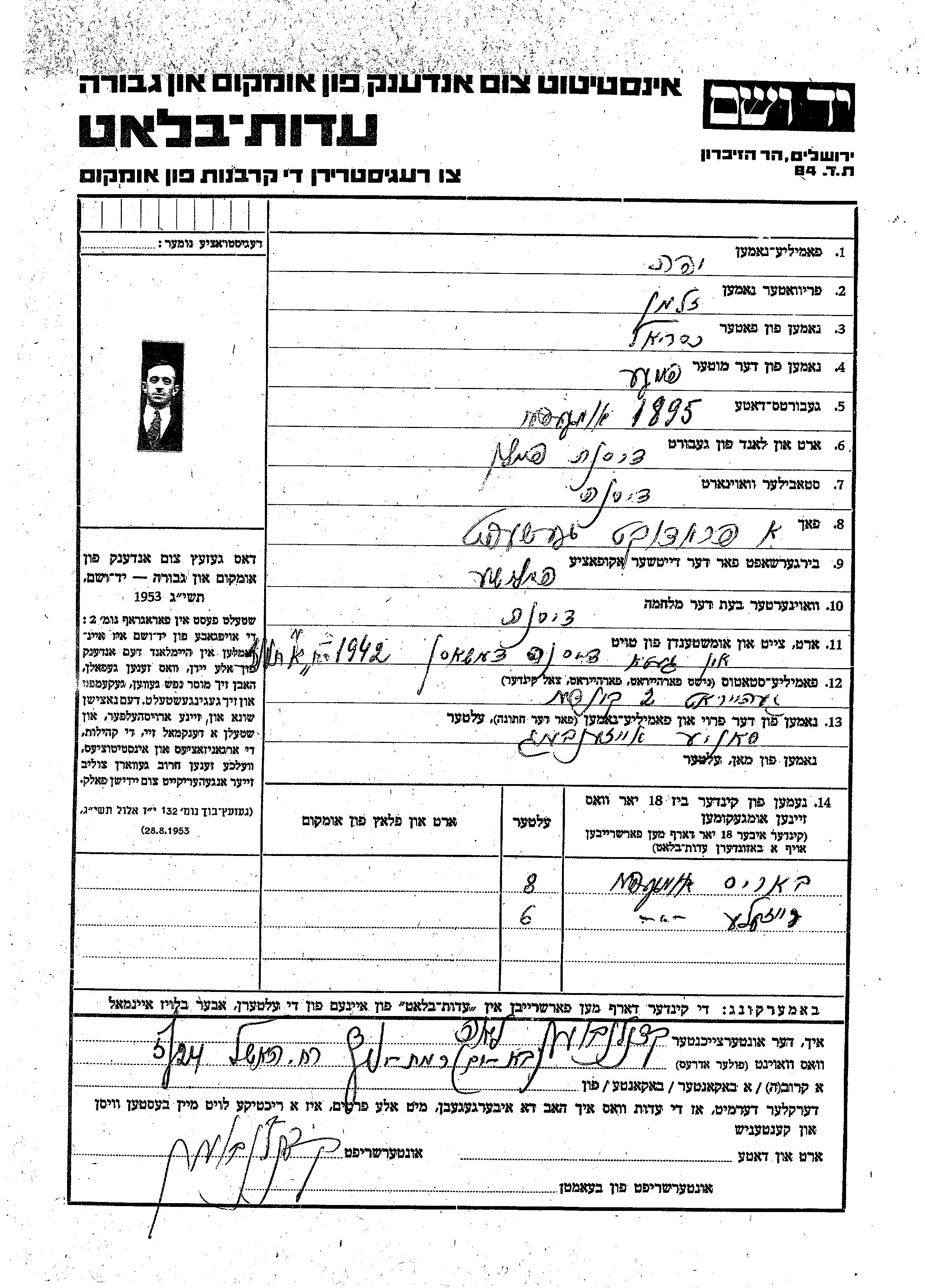 Iafe Reizele Dzisna, Pologne Feuille de témoignage
