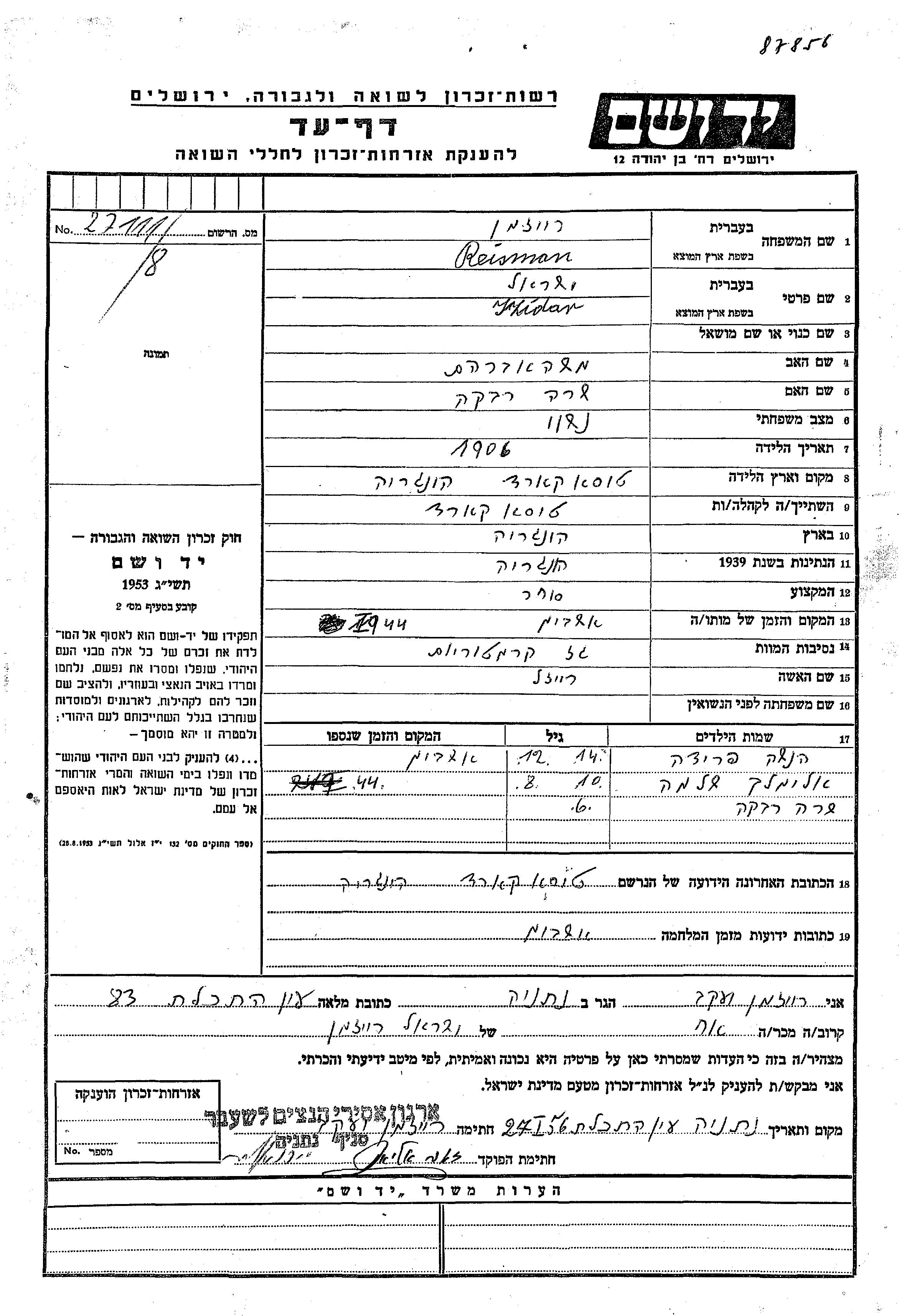 Yad Vashem - Pages of Testimony Names Memorial Collection
