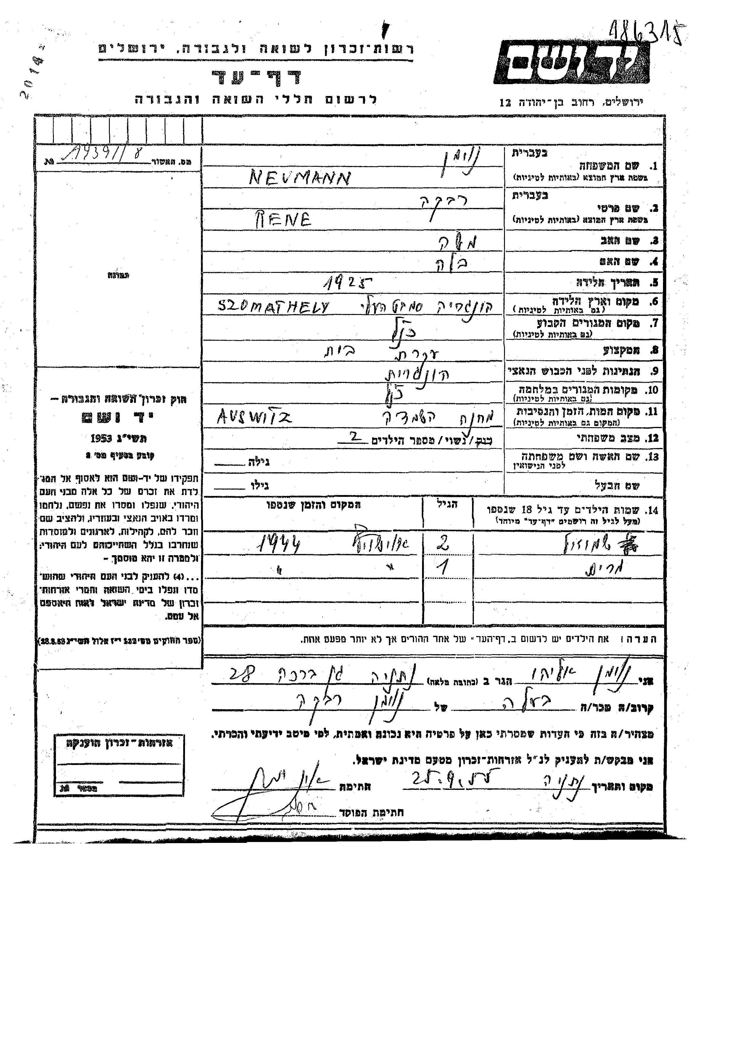 Recherche par lieu de résidence permanente avant la Shoah, ville, village, département, région ou pays.