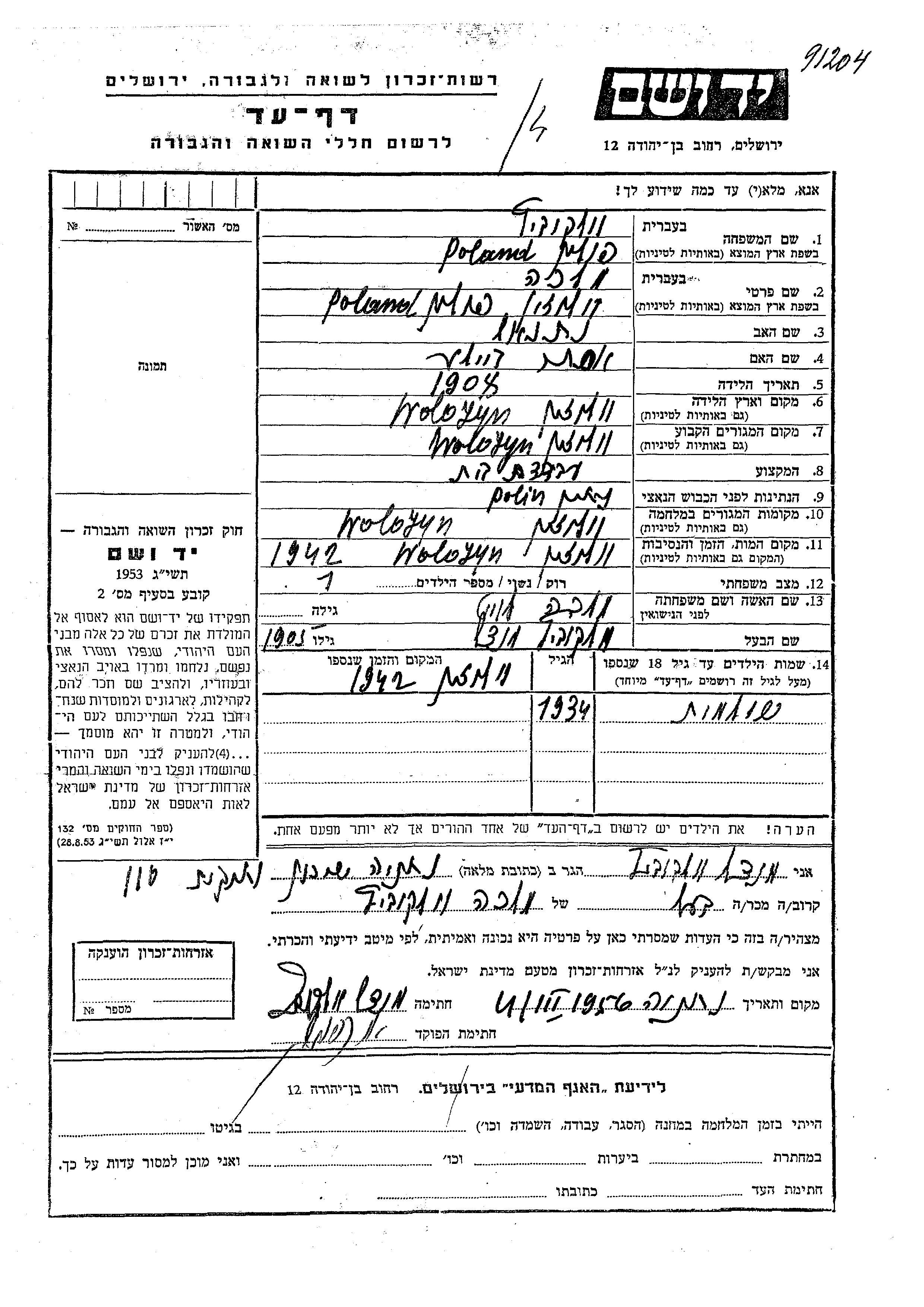 Yad Vashem - Pages of Testimony Names Memorial Collection