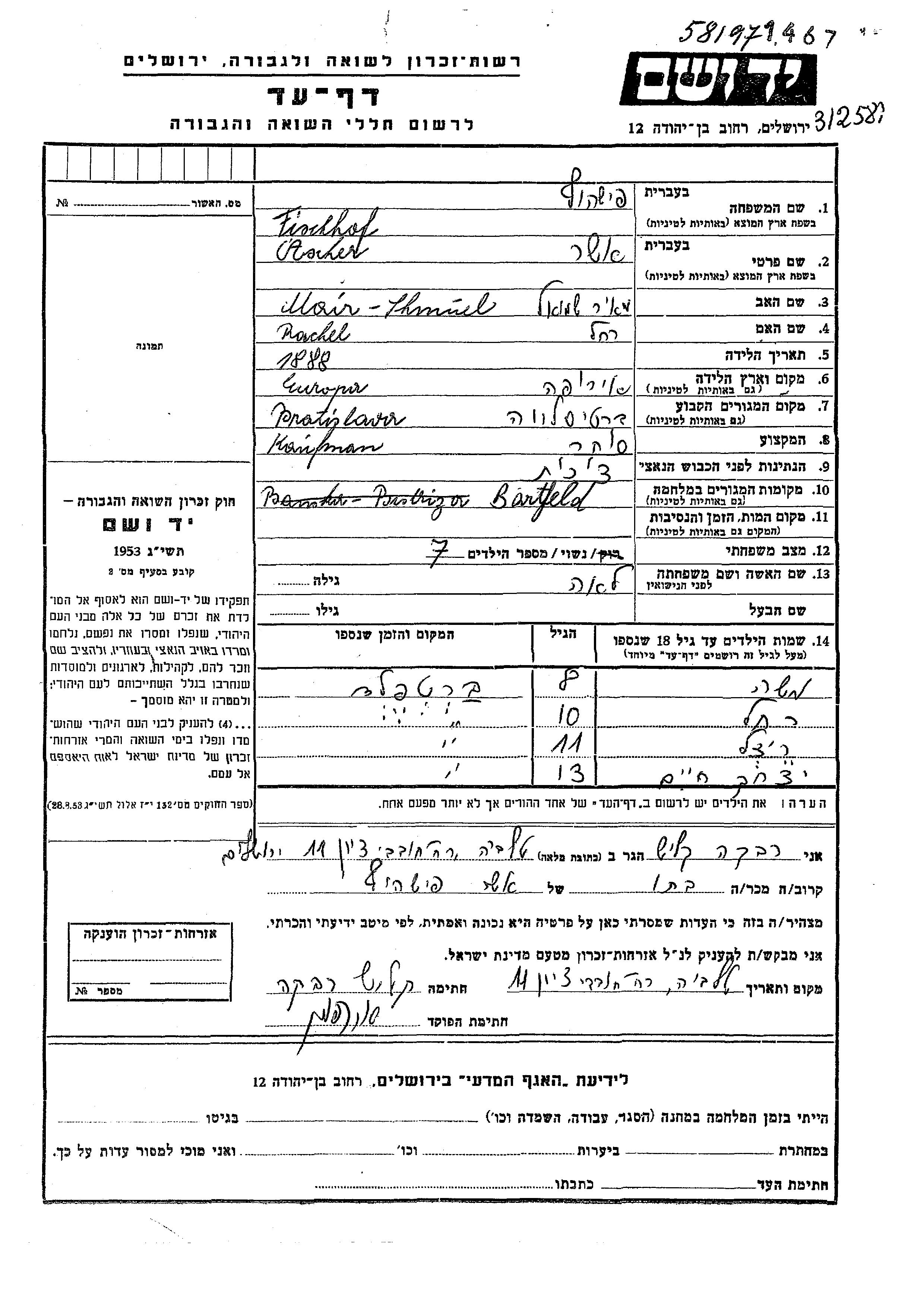 Yad Vashem - Pages of Testimony Names Memorial Collection