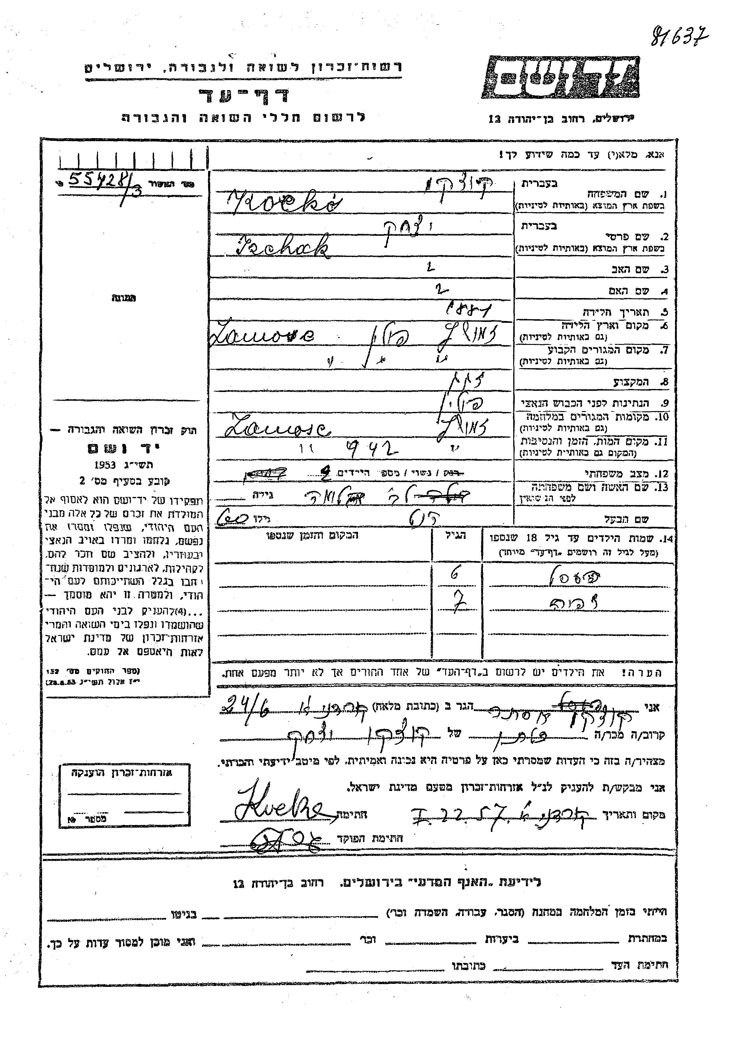 Yad Vashem - Pages of Testimony Names Memorial Collection