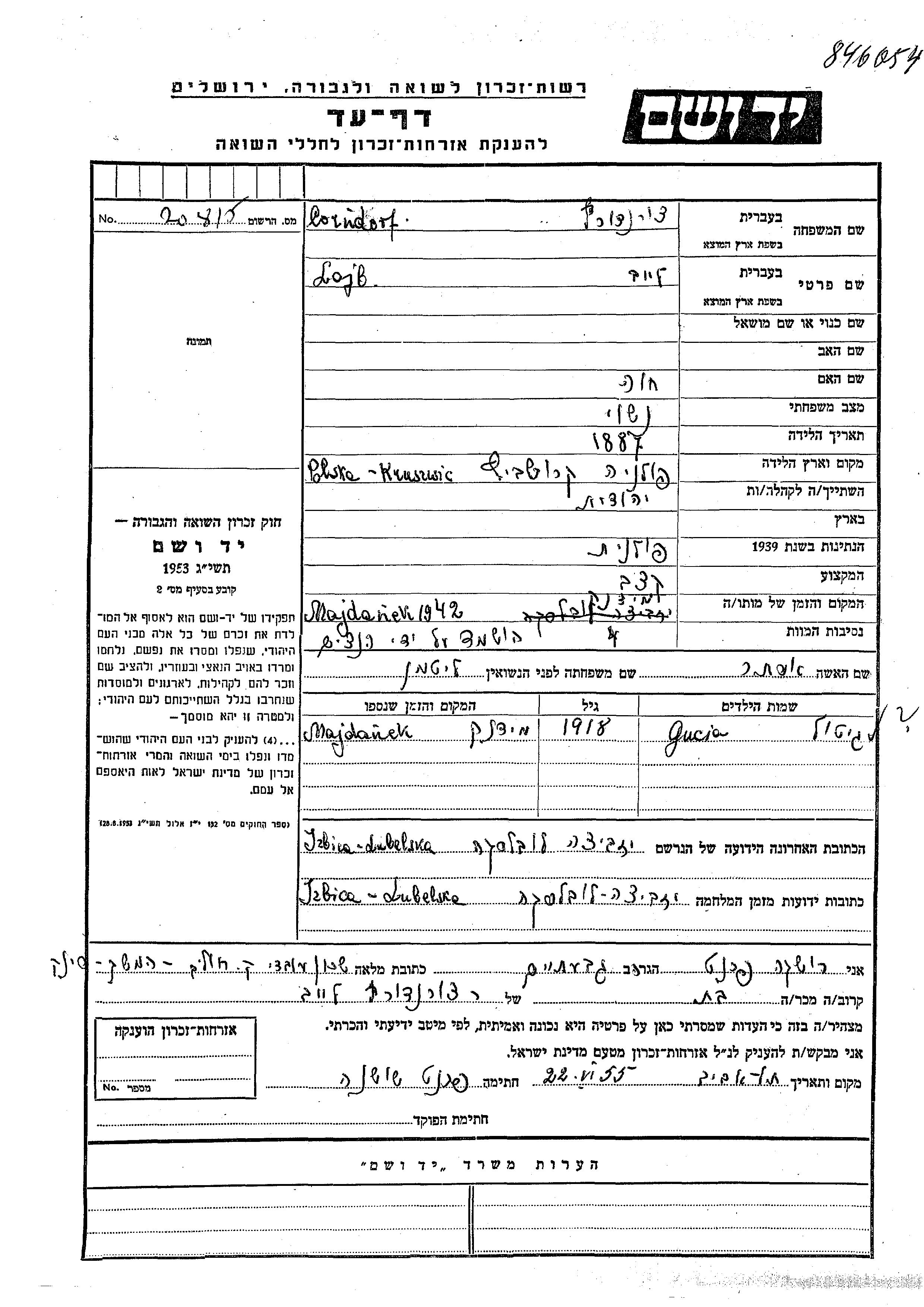 Yad Vashem - Pages of Testimony Names Memorial Collection