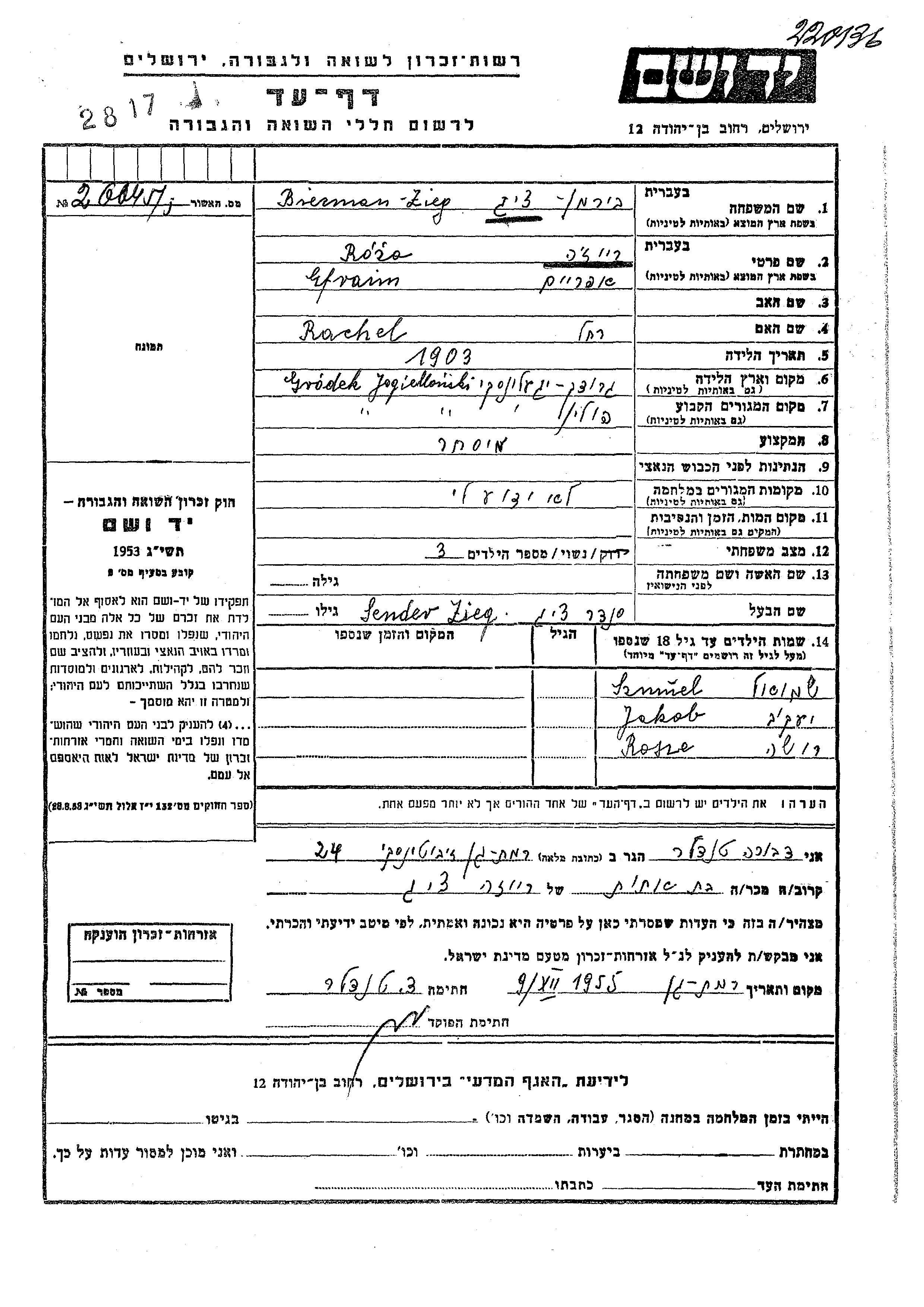 Yad Vashem - Pages of Testimony Names Memorial Collection