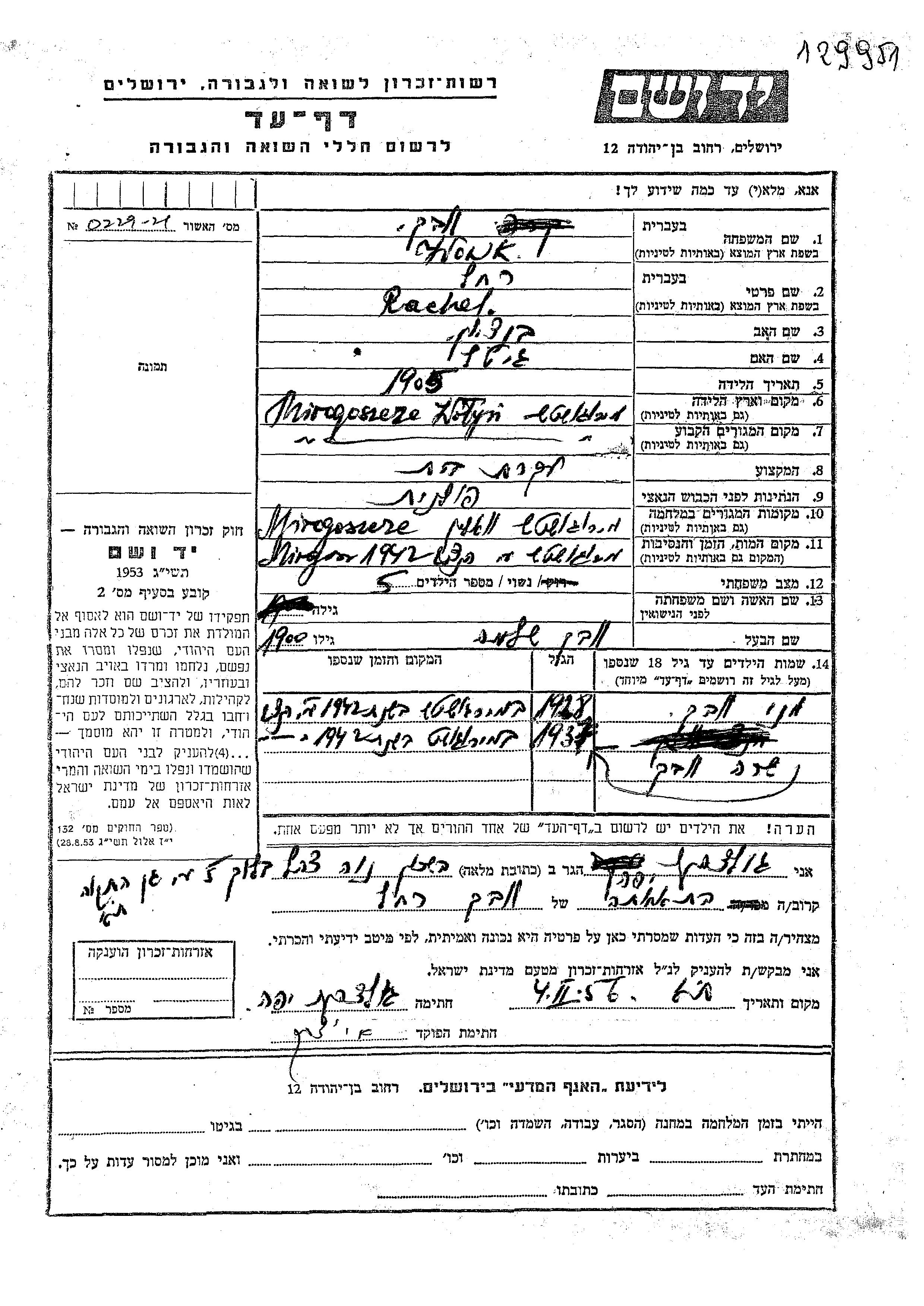 Yad Vashem - Pages of Testimony Names Memorial Collection