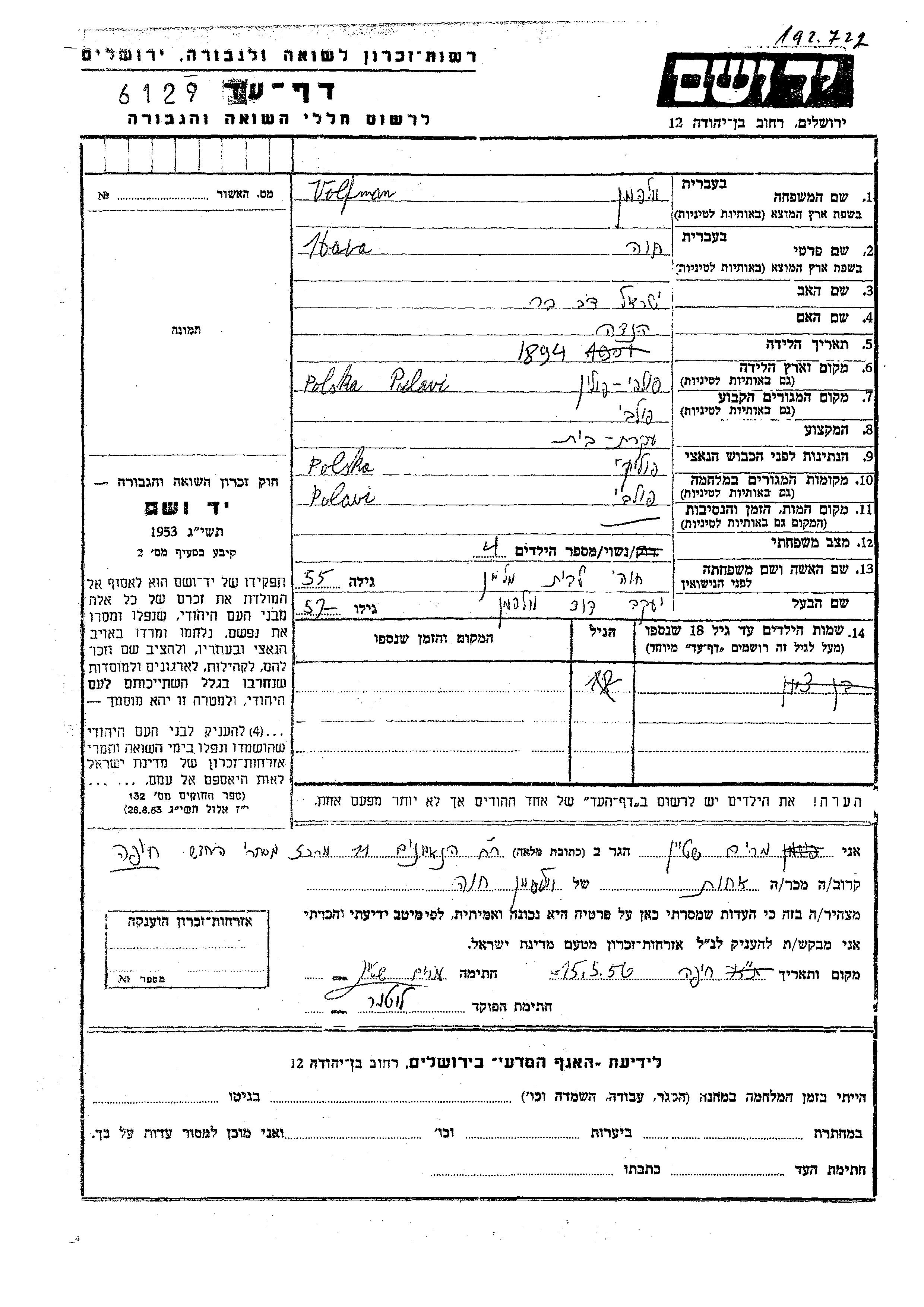 Yad Vashem - Pages of Testimony Names Memorial Collection