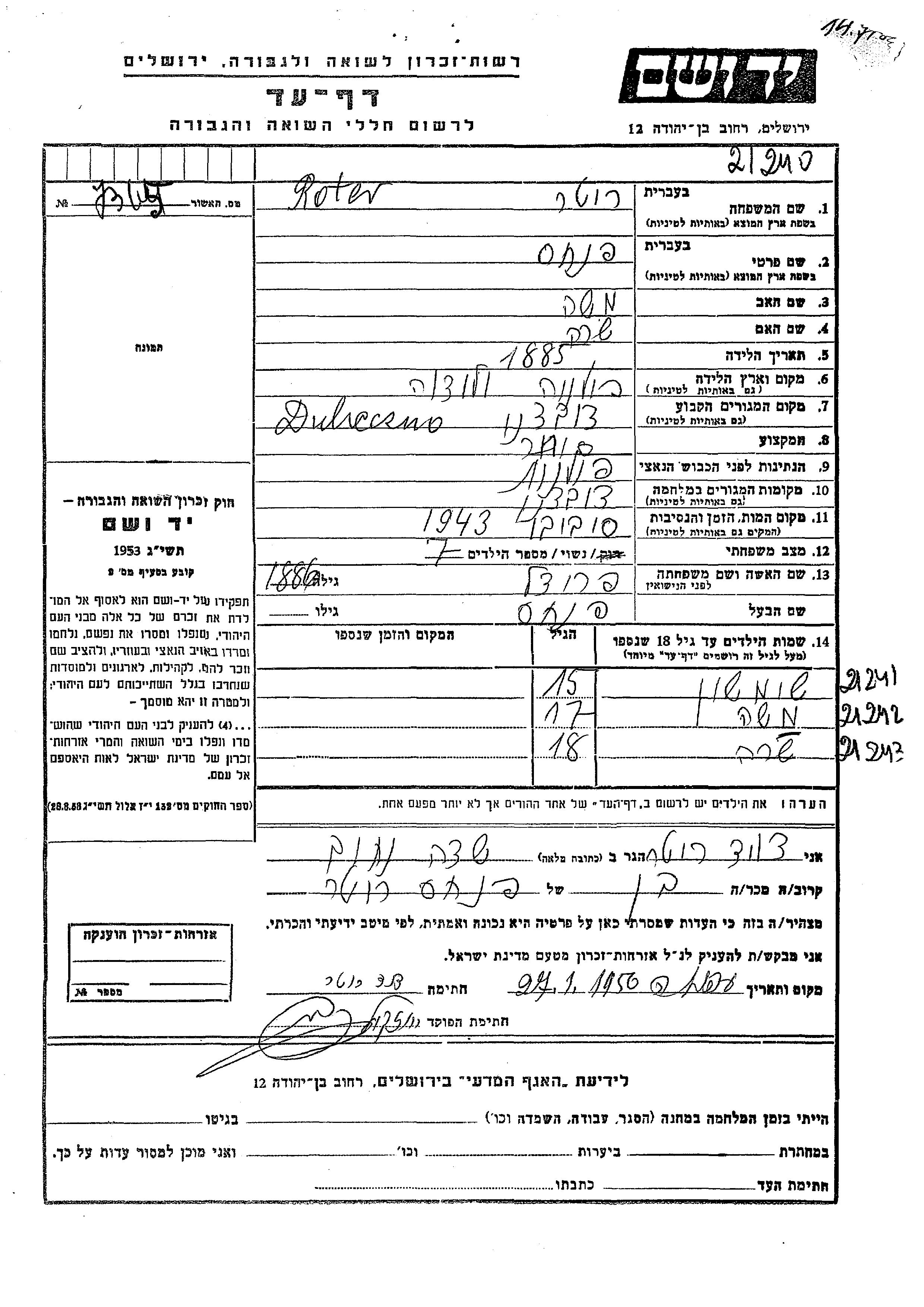 Yad Vashem - Pages of Testimony Names Memorial Collection
